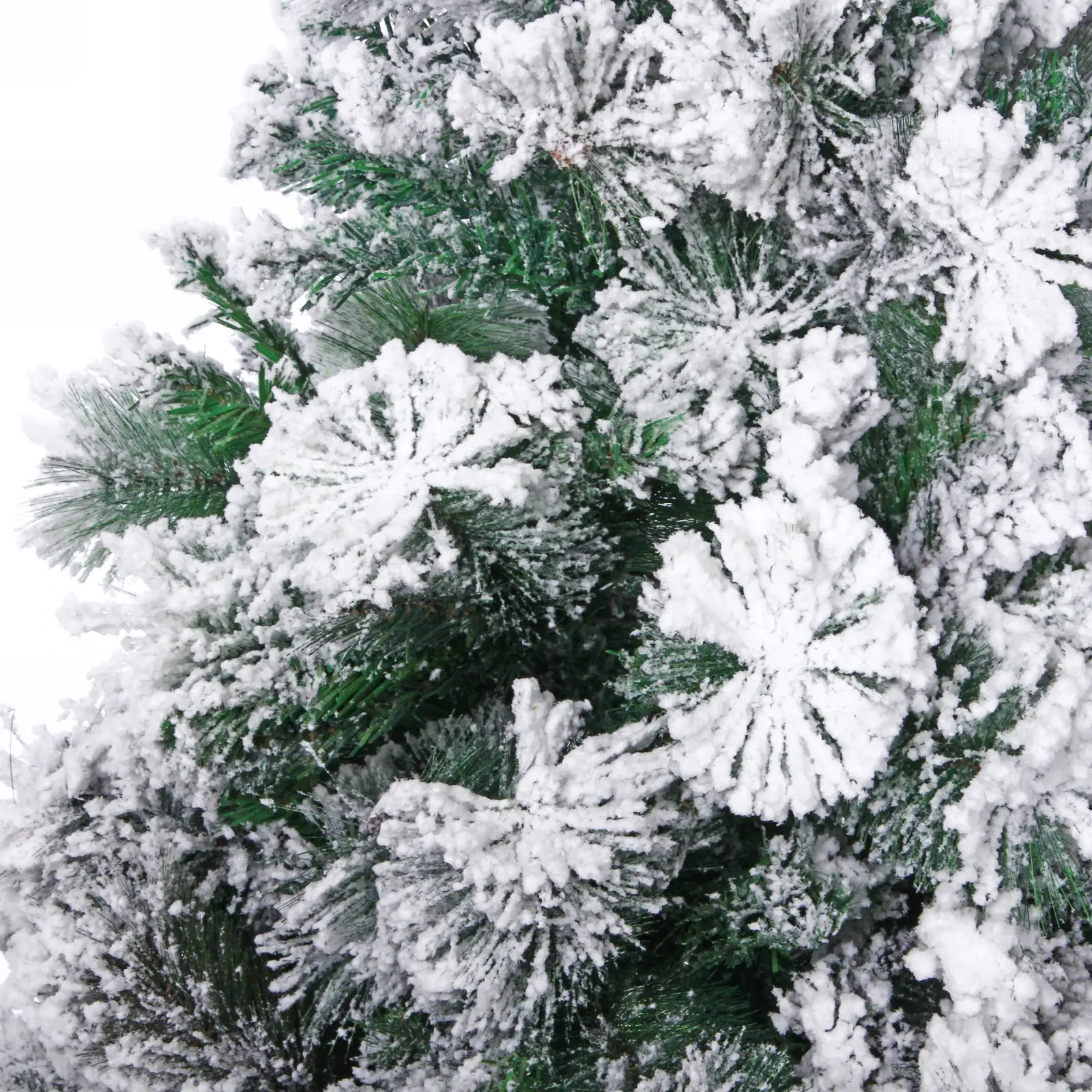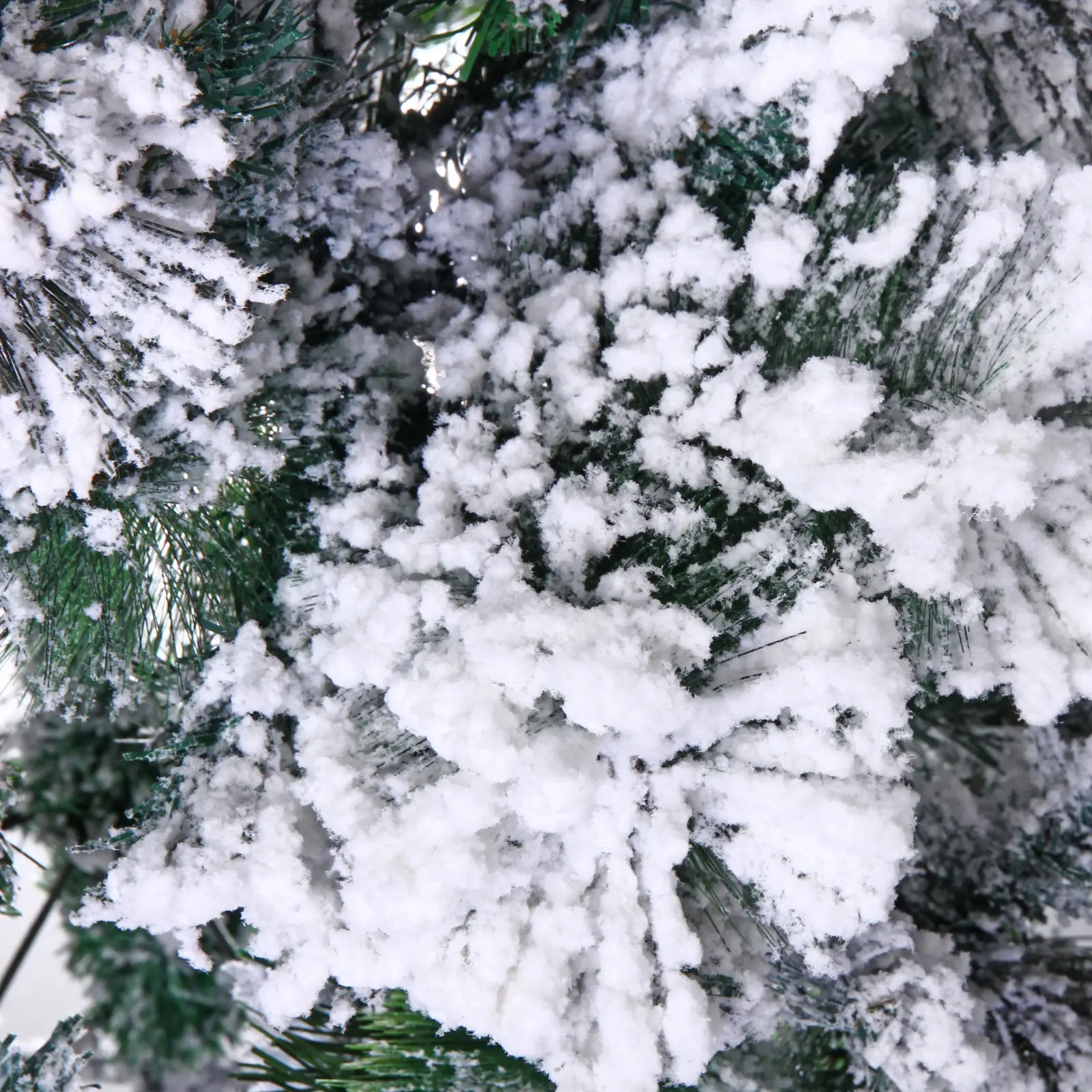 - Пышные ветки с белым снежным покрытием создают эффект настоящей зимней ели.