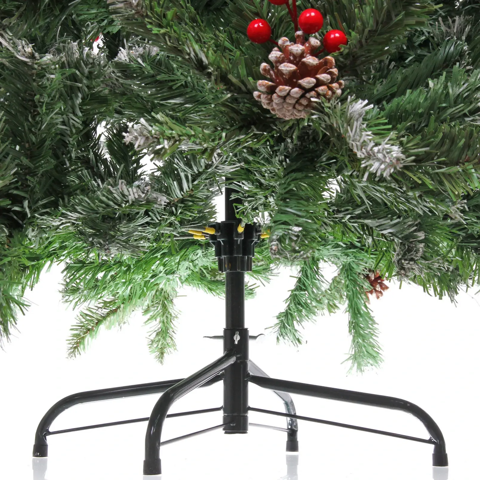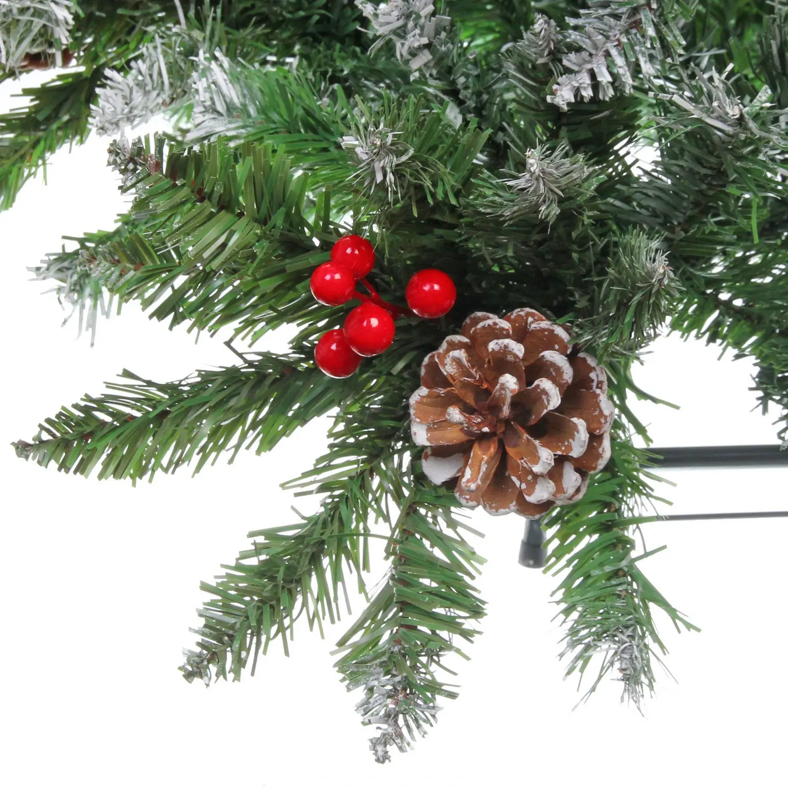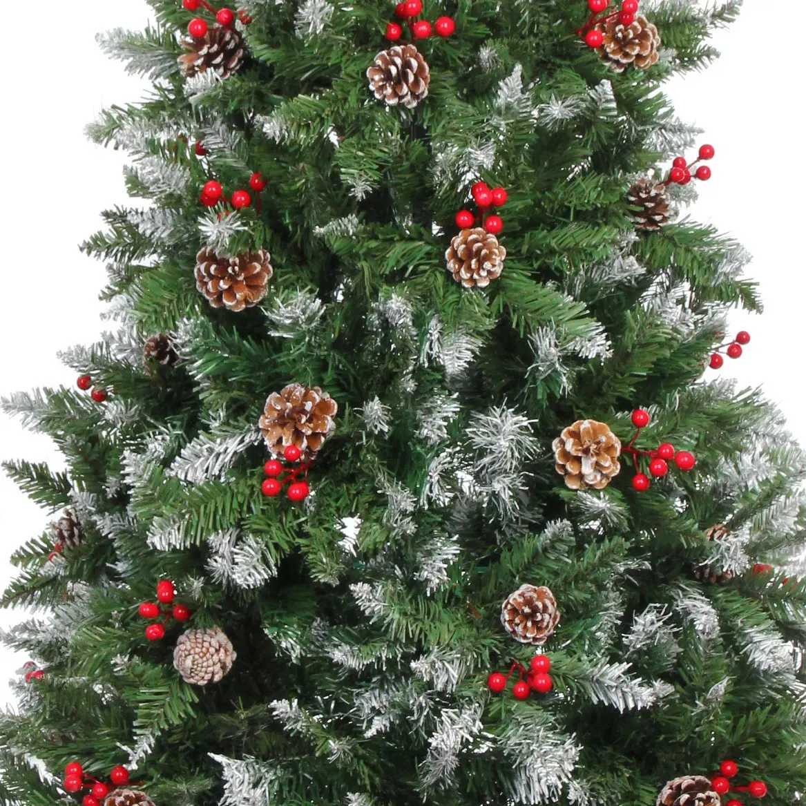 Искусственная ёлка «морозная» высотой 240 см моментально наполняет интерьер атмосферой праздника. Её пушистые, густые ветки ярко выделяются благодаря мягкому белому напылению, точно имитируя свежевыпавший снег. Натуральная форма и насыщенный зелёный оттенок с красными ягодами и шишками создают ощущение настоящей лесной ели — идеальный вариант для яркого, уютного и комфортного убранства на Новый год и Рождество.