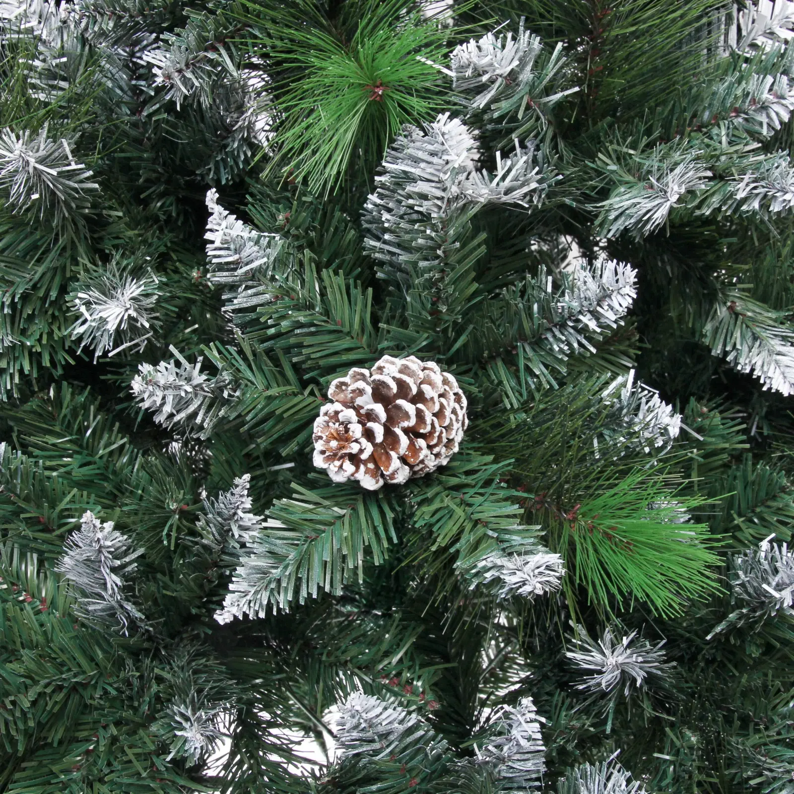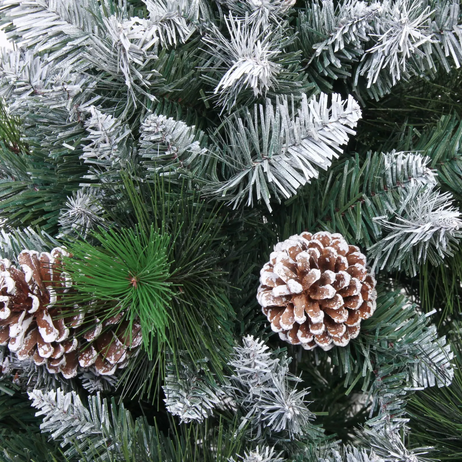 Эта модель отличается практичностью и продуманным дизайном. Зеленые иголочки, усыпанные искусственным снегом, и натуралистичные шишки создают ощущение настоящей зимней сказки. Ёлка имеет прочную конструкцию, обеспечивающую устойчивость, и легко собирается, позволяя вам быстро подготовиться к празднику.
