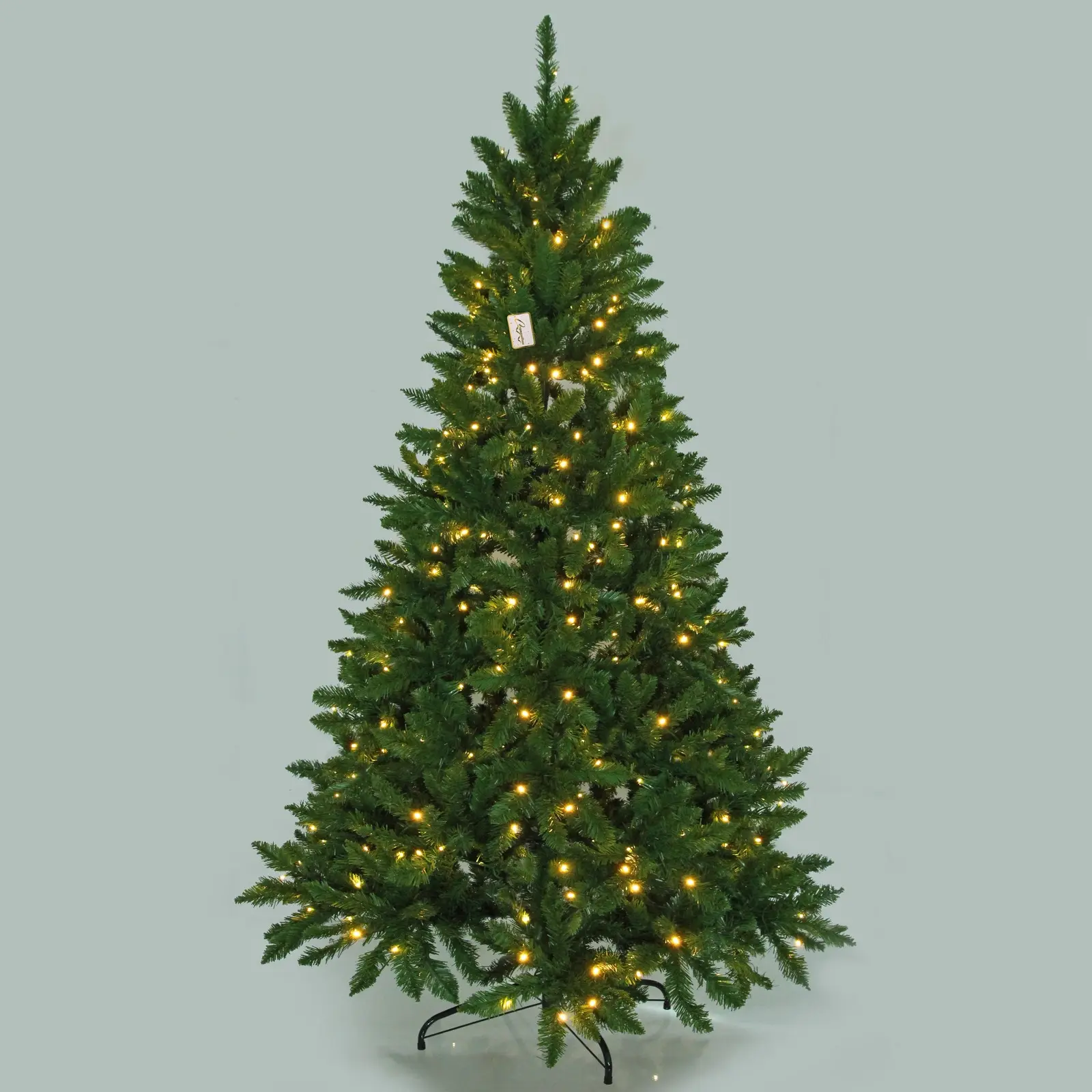 Ёлка «Свет в ночи» высотой 210 см — это идеальное решение для создания волшебной атмосферы в вашем доме на Новый год. С её помощью вы сможете легко украсить любое пространство, добавив нотки уюта и радости. Пышная зелёная ёлка с 1100 ветками и 420 LED лампами, излучающими тёплый белый свет, станет центром внимания на вашем празднике.