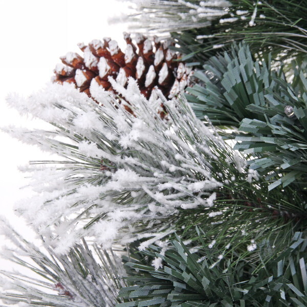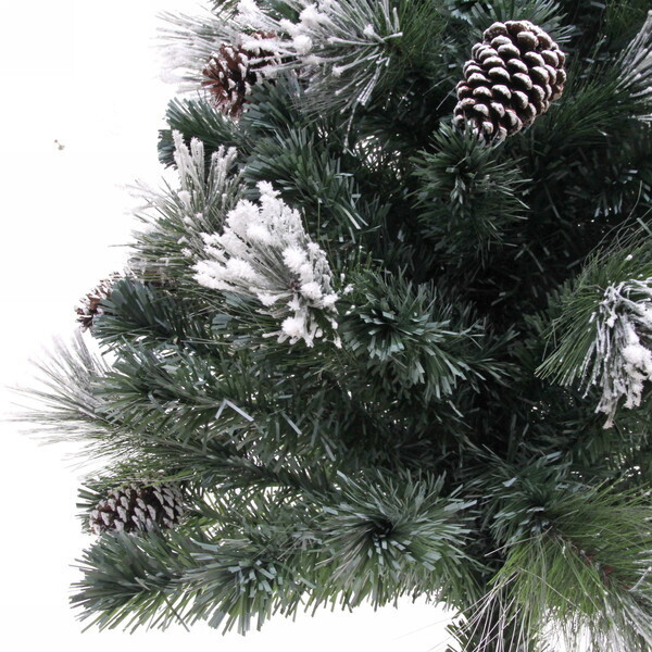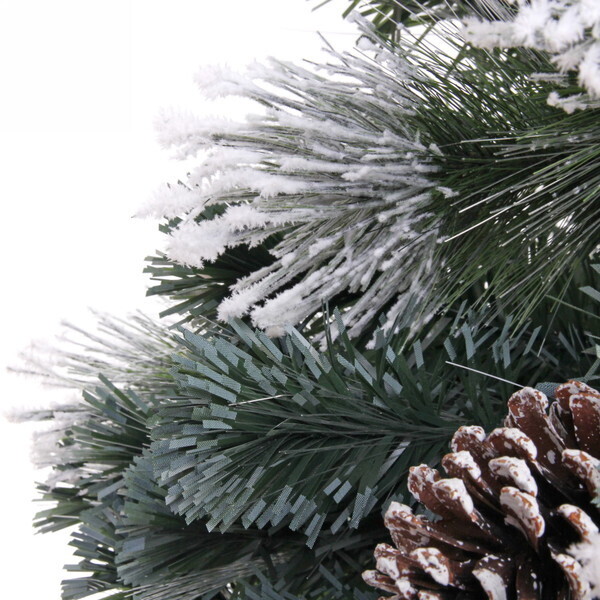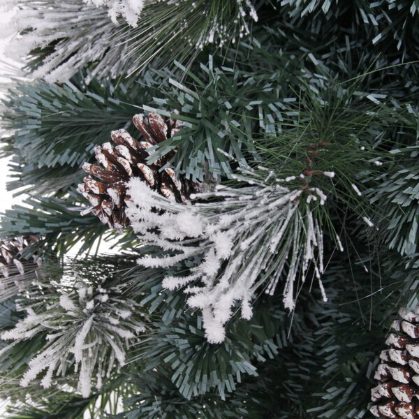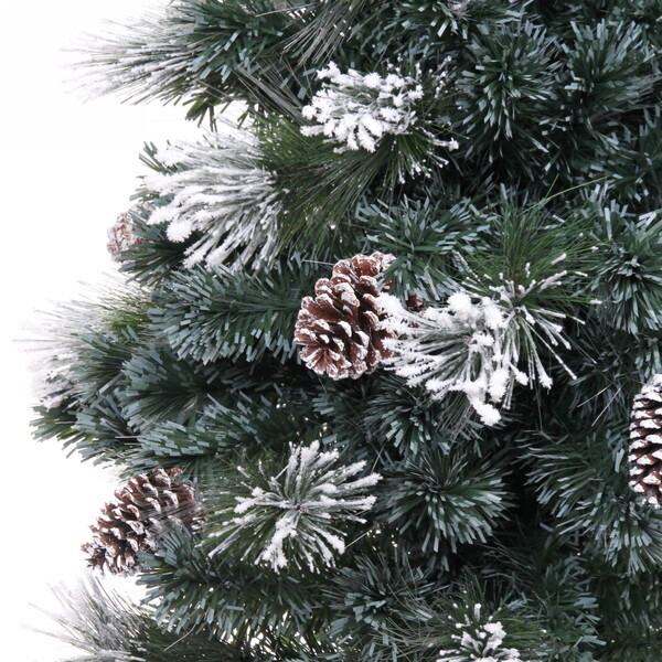 Высота ёлки составляет 210 см, что делает её заметным элементом декора. Шишки, расположенные на ветвях, добавляют дополнительный шарм и создают ощущение зимней сказки. Благодаря белому напылению, ёлка выглядит так, будто она только что была покрыта свежим снегом. Это идеальный выбор для тех, кто хочет создать атмосферу настоящего зимнего праздника.