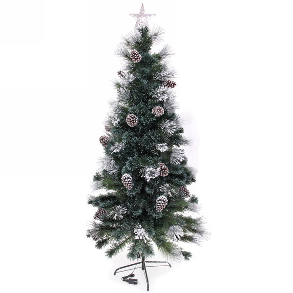 Эта ёлка прекрасно подходит для украшения как жилых помещений, так и офисов. Она легко устанавливается на черной металлической подставке, что обеспечивает её устойчивость. Вы можете разместить её в любом уголке вашего дома, будь то гостиная, спальня или даже на балконе. Ёлка украшена шишками и белым напылением, что придаёт ей натуральный вид и делает её ещё более привлекательной.