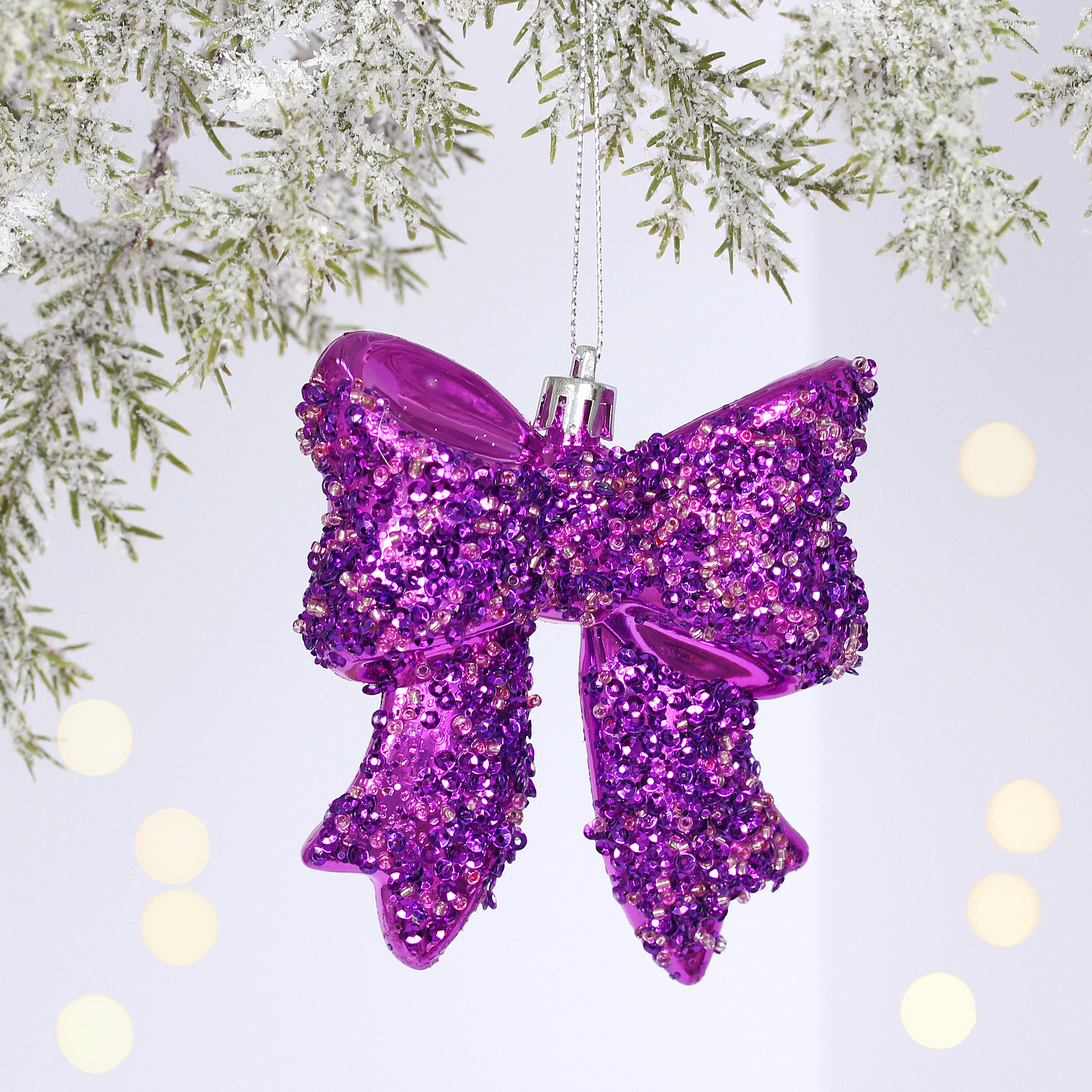 Ёлочная игрушка «Бант» 8.5*3*9.2 см, Фиолетовый, пластик, для елки и декорирования