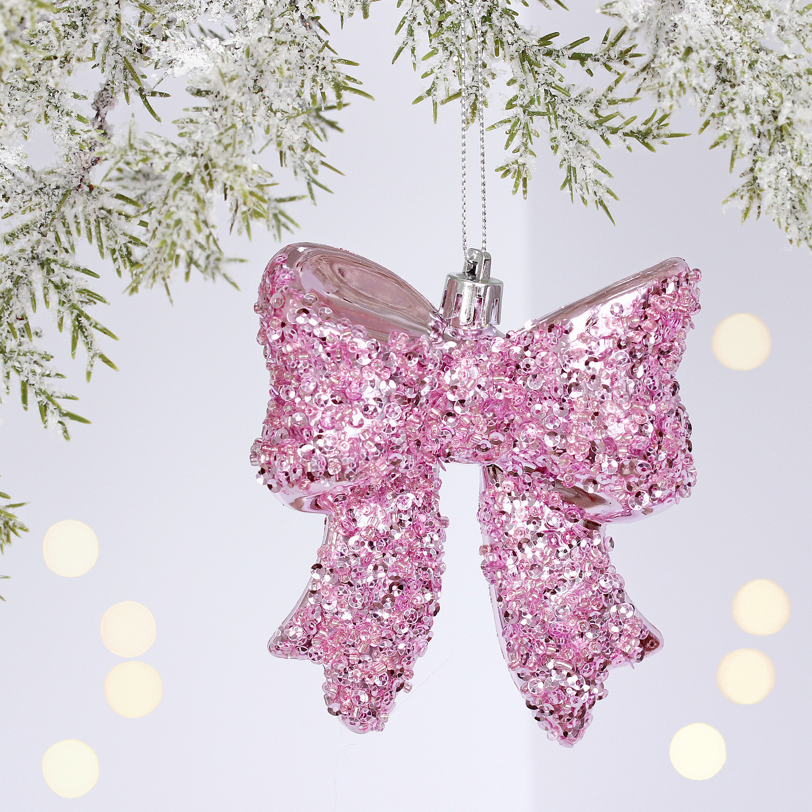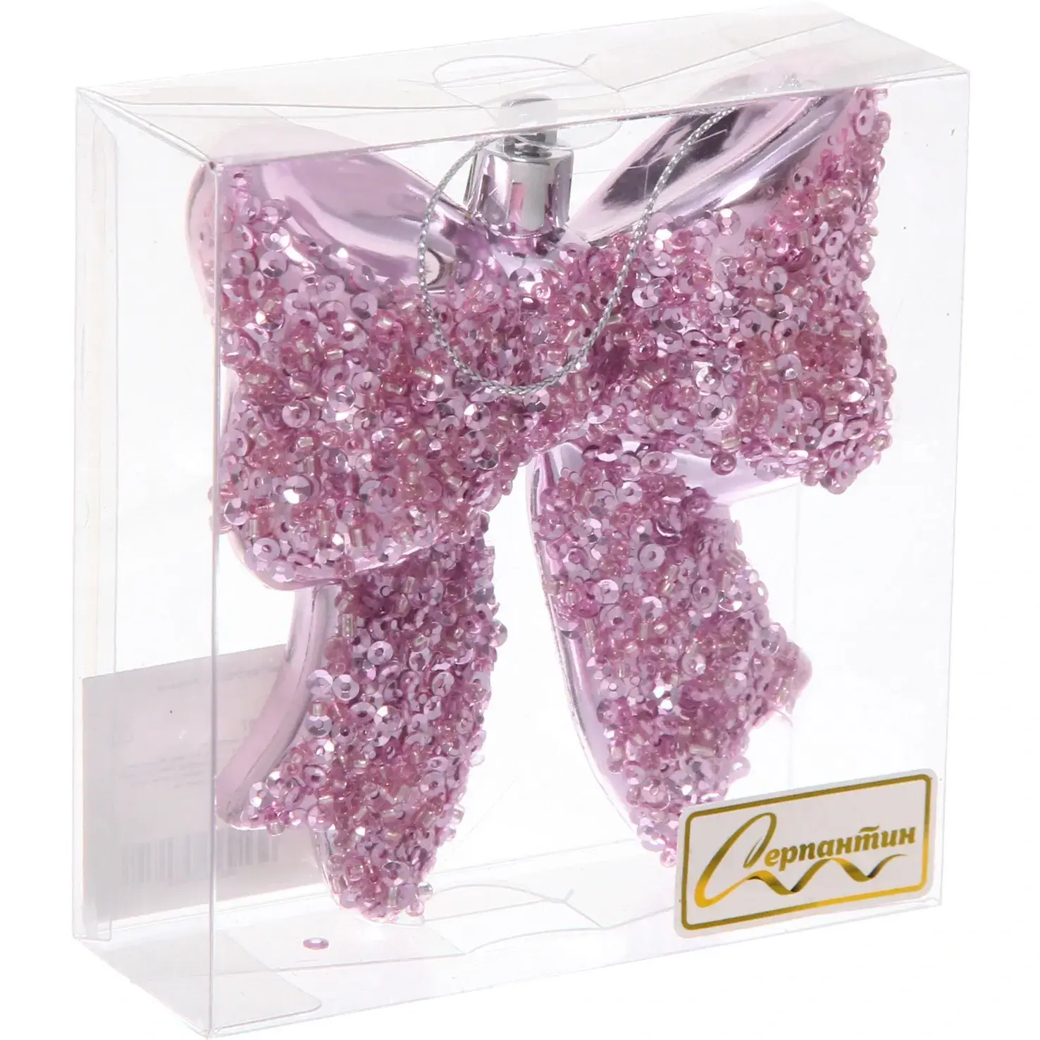 Превратите новогоднюю ёлку в сказочное украшение с игривым бантом цвета нежной розы. Благодаря особому декору из мелких блёсток, игрушка переливается и искрится при каждом движении.