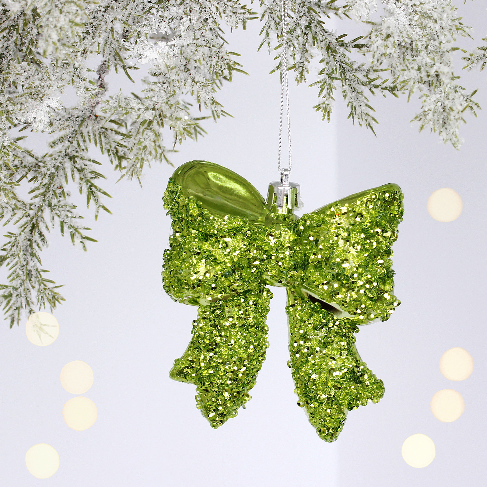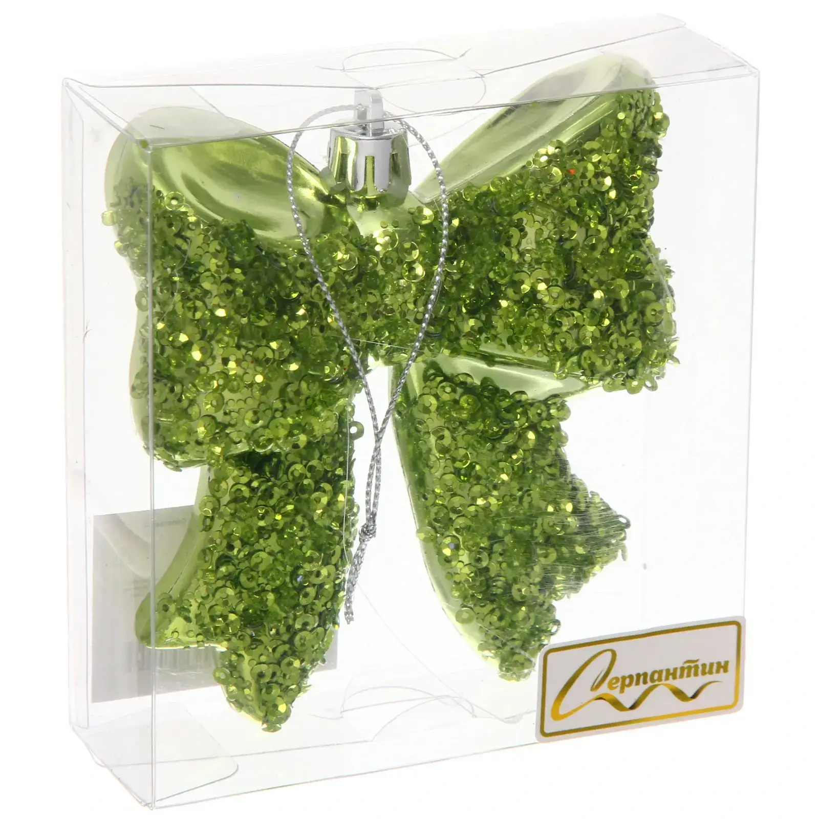Ёлочная игрушка «Бант» 8.5*3*9.2 см, Салатовый, пластик, для елки и декорирования