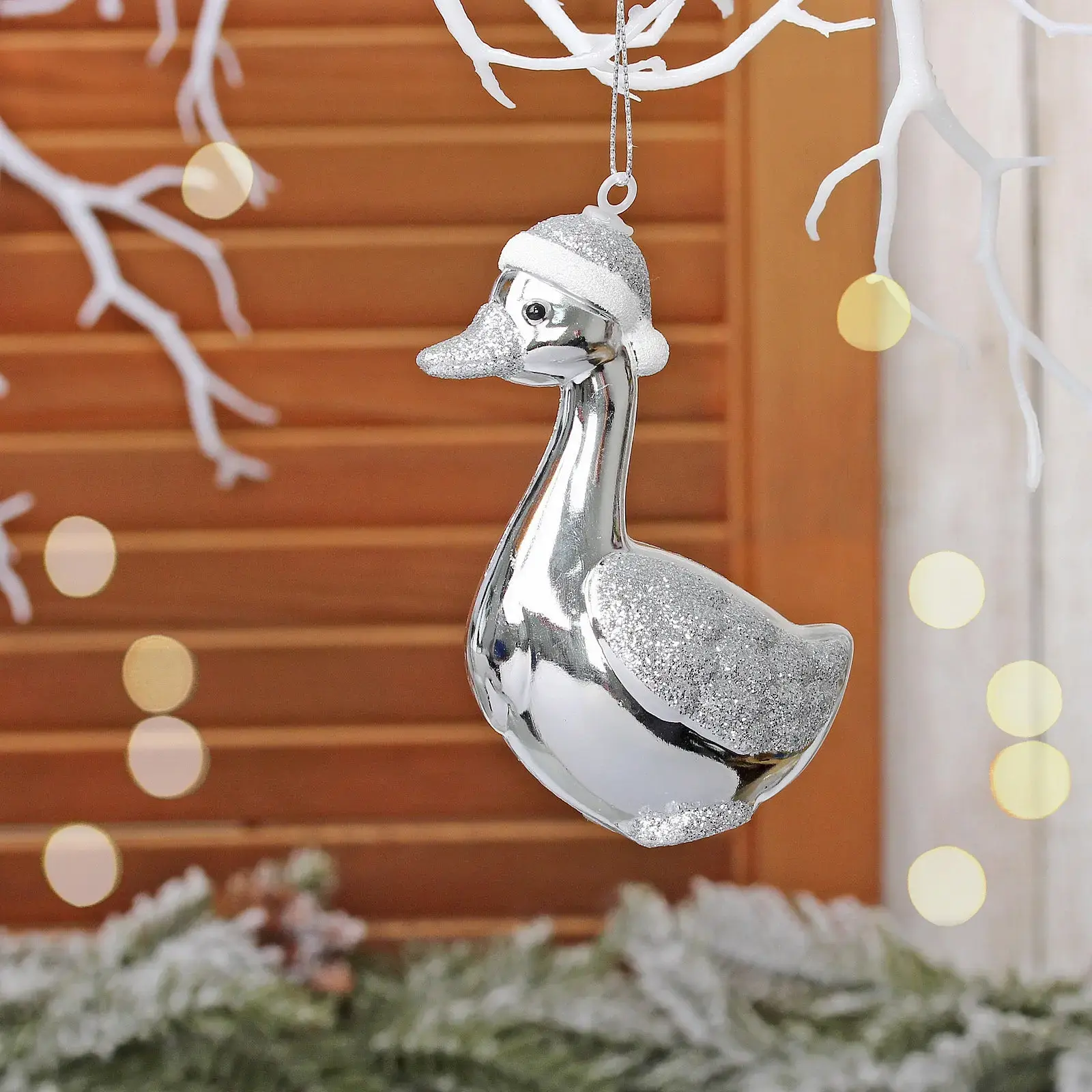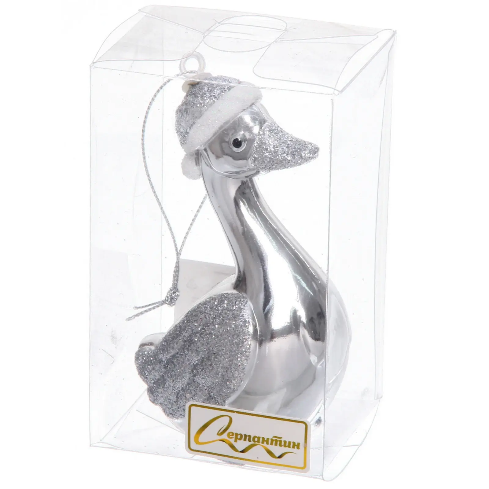Ёлочная игрушка «Гусь» 7*5*10 см, Серебро, пластик, для елки и декорирования
