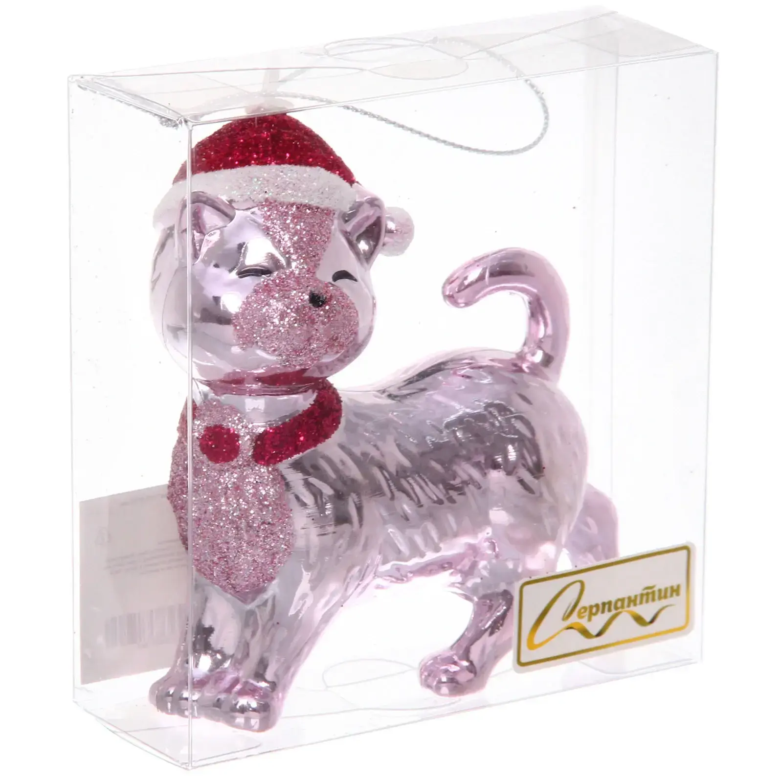 Ёлочная игрушка «Кошка в колпачке» 9*3,5*10 см, Розовый, пластик, для елки и декорирования