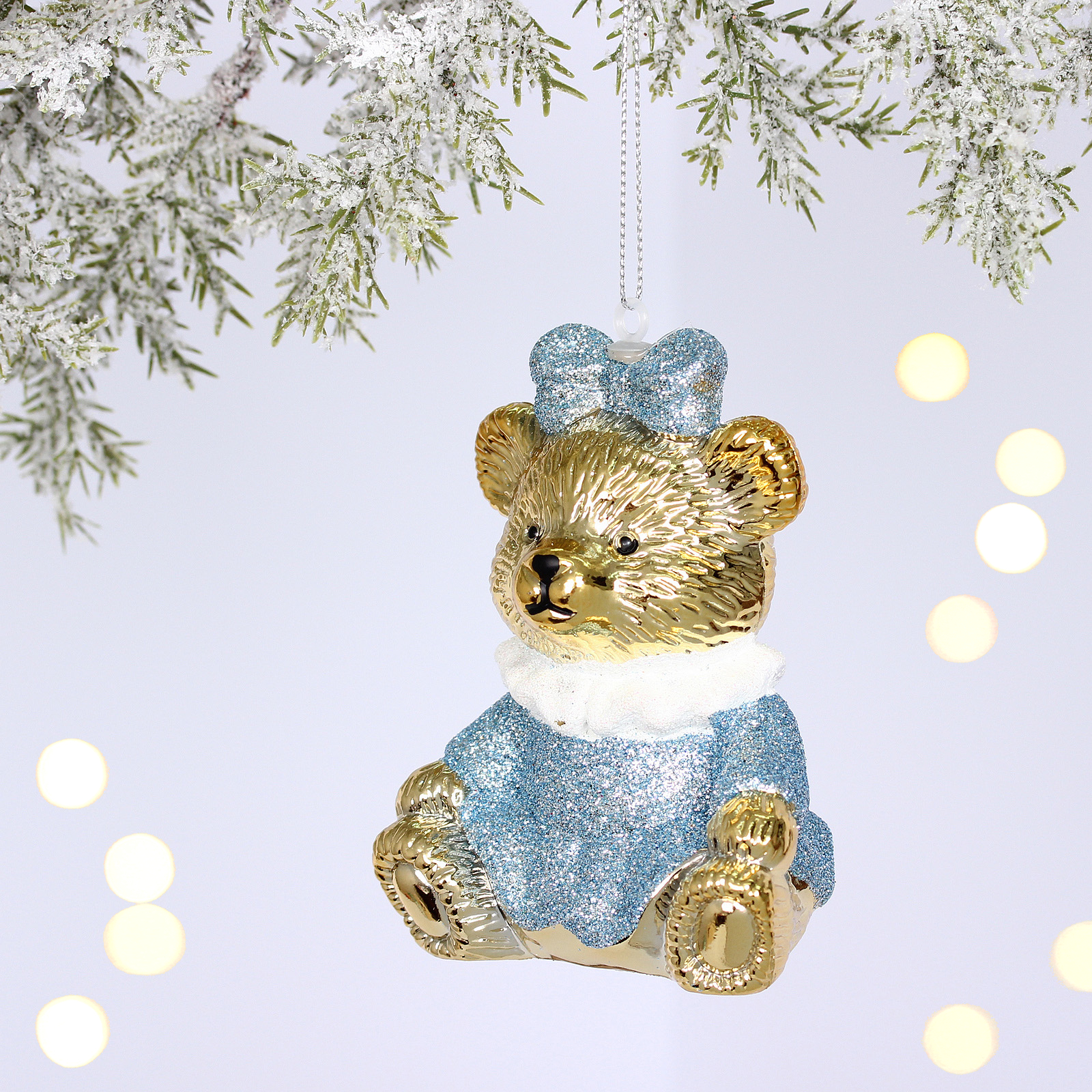 Ёлочная игрушка «Милая медведица» 7,5*6*9,5 см, Голубой, пластик, для елки и декорирования