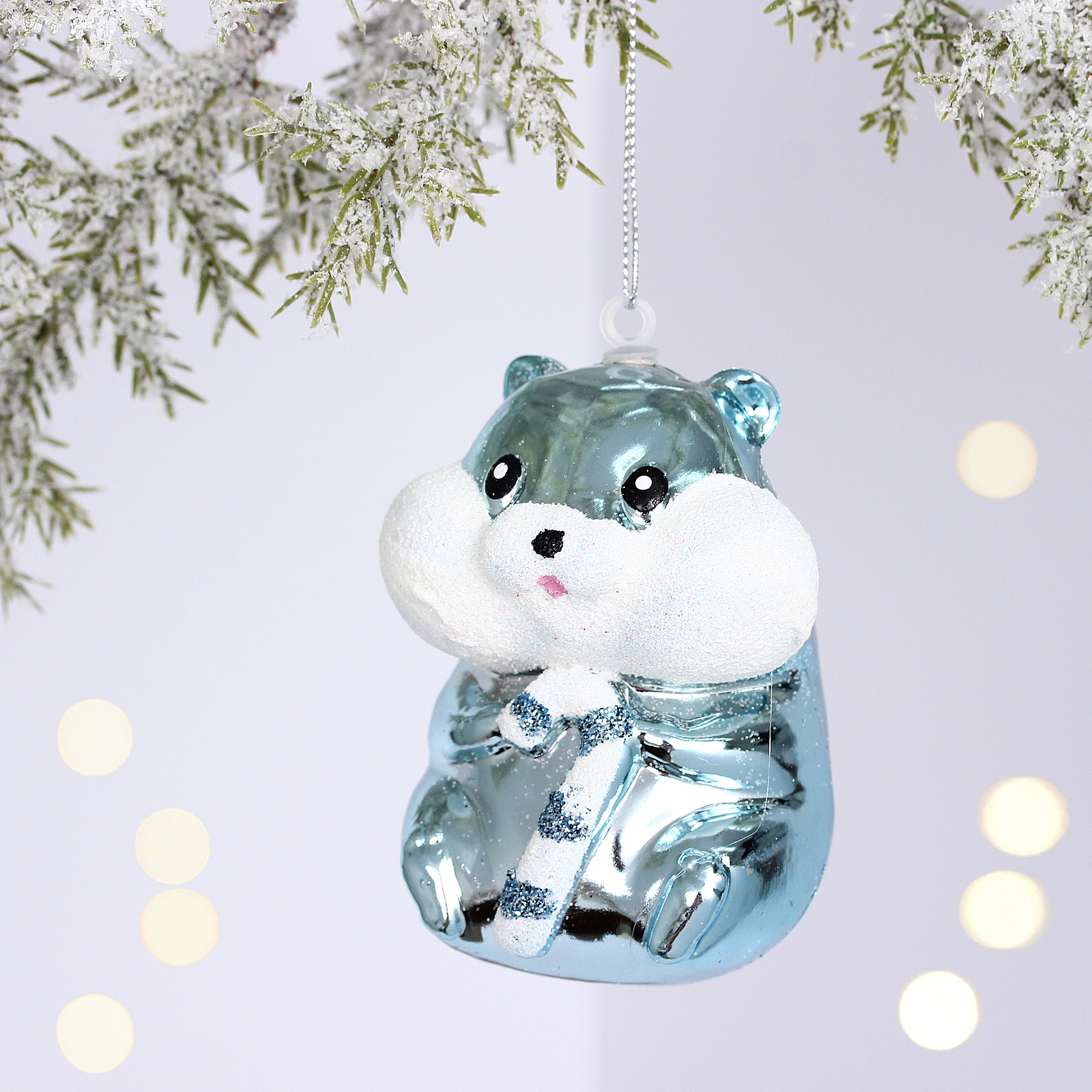 Ёлочная игрушка «Милый бурундук» 5.5*6*8.5 cм, Голубой, пластик, для елки и декорирования