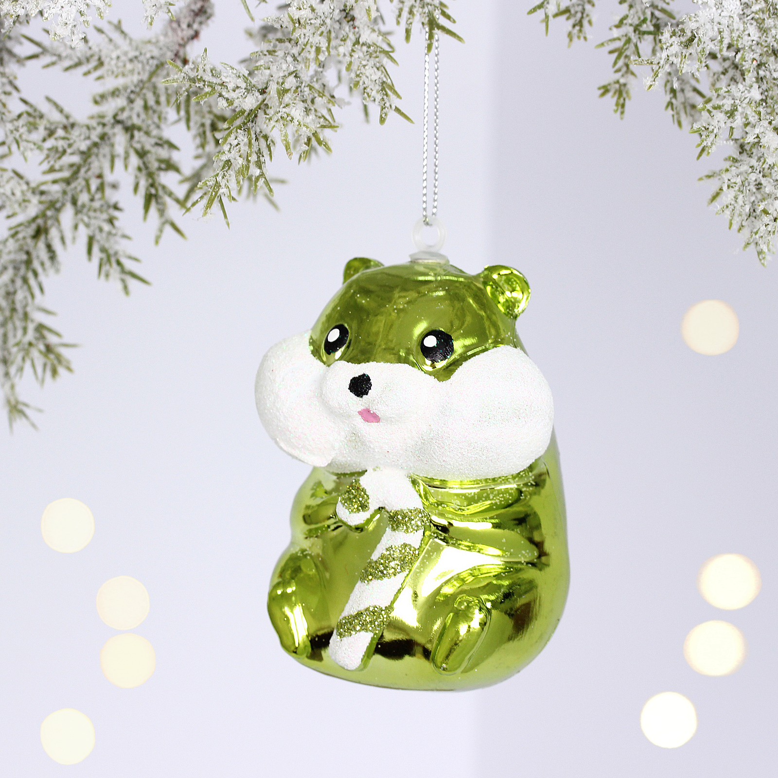 Ёлочная игрушка «Милый бурундук» 5.5*6*8.5 cм, Салатовый, пластик, для елки и декорирования