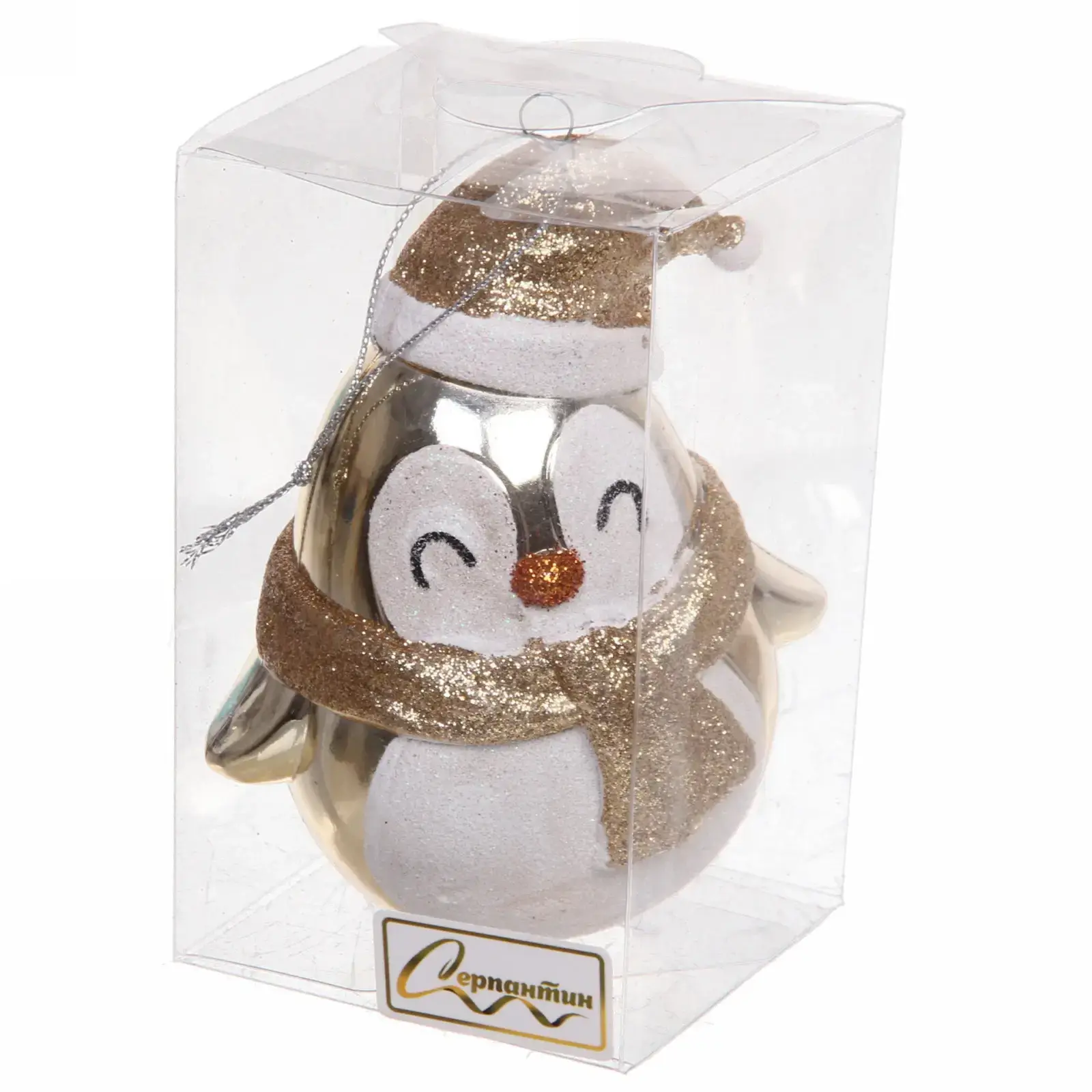 Размеры игрушки составляют 12х7х12 см, что делает её компактной и удобной для размещения на ёлке. Материал — пластик, что гарантирует лёгкость и безопасность при использовании. Пингвин одет в праздничную шапочку и шарф, что добавляет ему очарования и делает его идеальным символом зимних праздников.