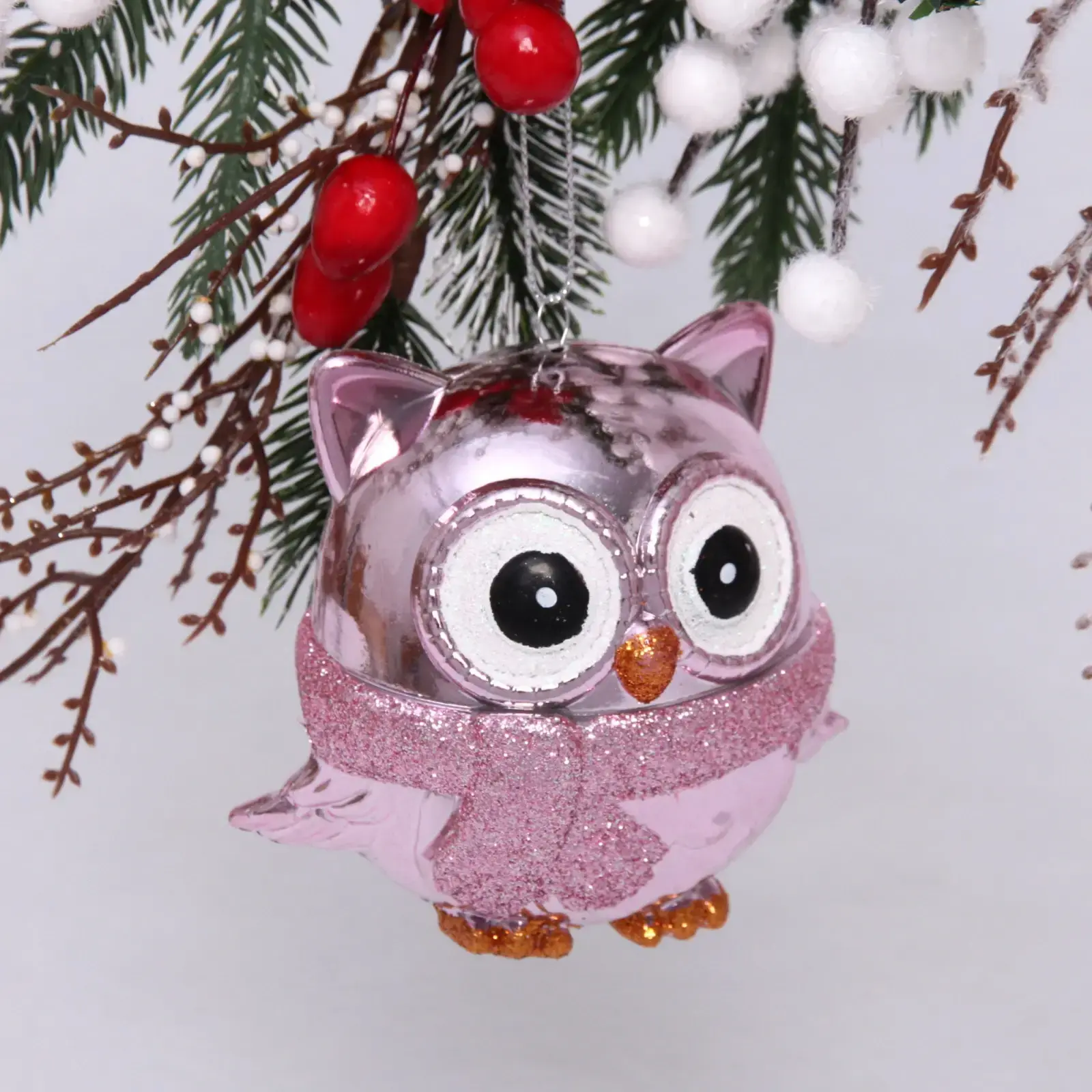 Создайте волшебную атмосферу праздника с ёлочной игрушкой «Мудрая сова». Эта игрушка не только украсит вашу ёлку, но и станет символом мудрости и уюта в вашем доме. Розовый цвет с блестящей поверхностью придаёт ей особый шарм, а округлая форма и детализированные черты делают её настоящим произведением искусства.
