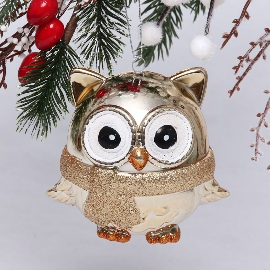 Ёлочная игрушка "Мудрая сова", 10*5*10 см, стекло, цвет шампань