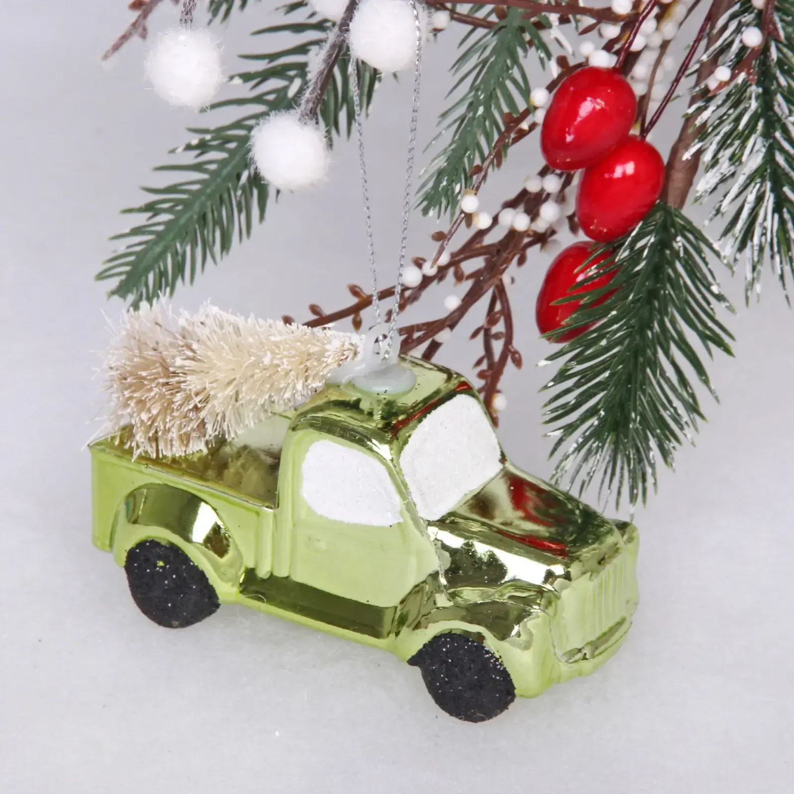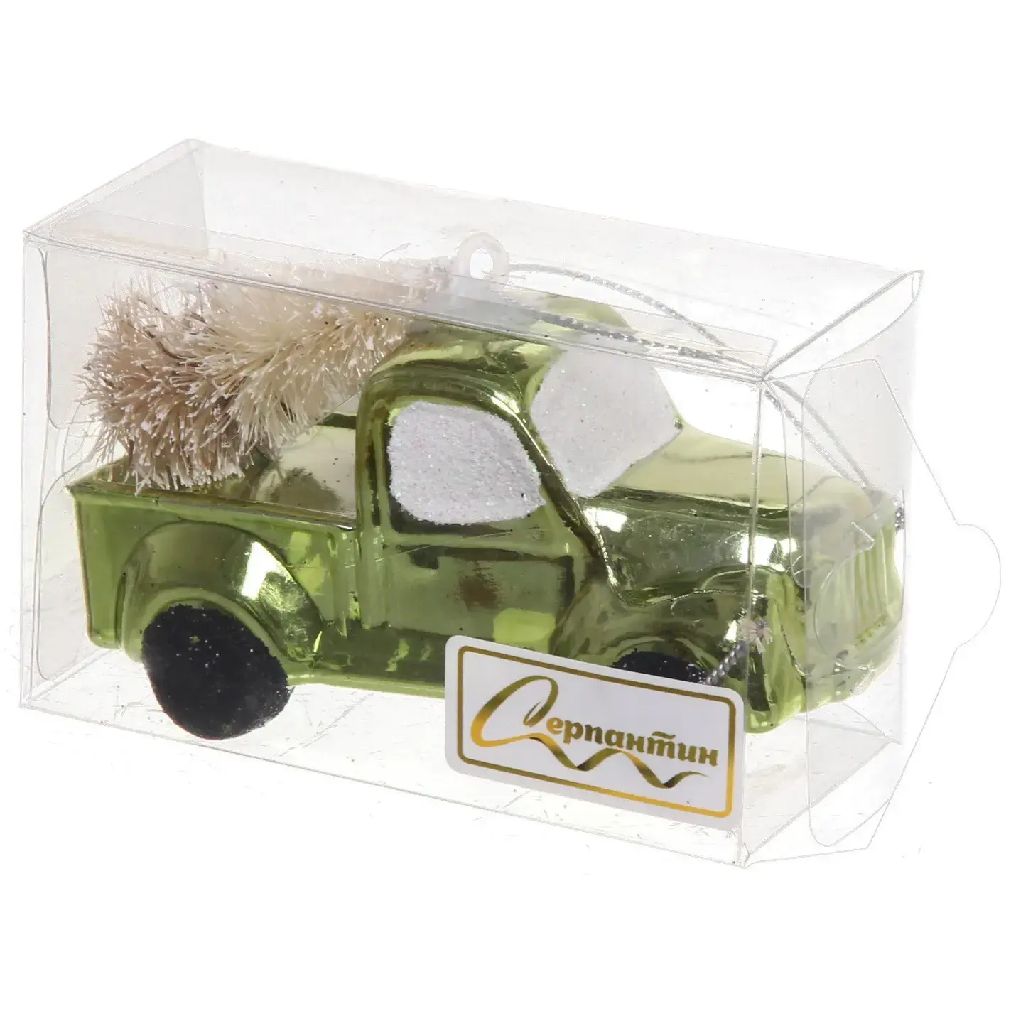 Украшайте ёлку стильной игрушкой 'Новогодний экспресс' – оригинальным грузовичком с праздничной ёлочкой на борту. Блестящая зелёная поверхность и аккуратные детали создают атмосферу волшебства.