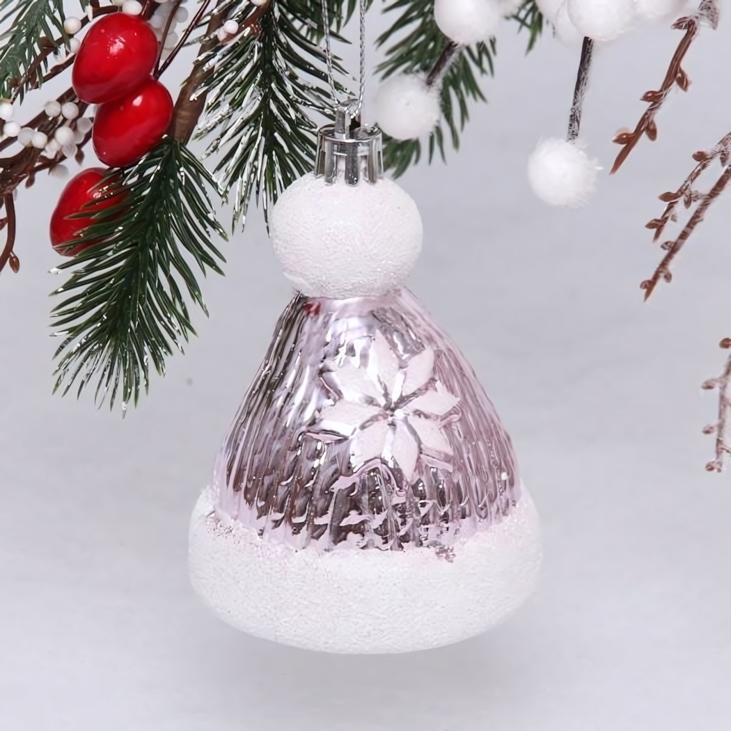 Эта ёлочная игрушка «Новогодняя шапочка» превратит ваш праздник в волшебный спектакль, где каждый луч света отражается в нежных розовых граньях и блестящем глиттере.