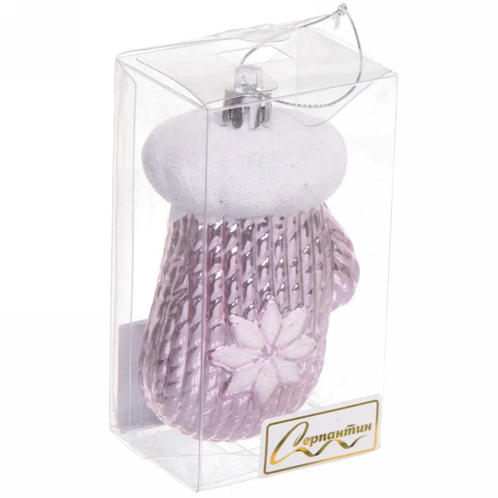 Размеры игрушки составляют 5 см в ширину, 4 см в глубину и 10 см в высоту, что делает её идеальной для размещения на ёлке или в других местах декора. Розовый цвет с белым верхом, имитирующим мех, придаёт игрушке особый шарм и делает её универсальной для любого стиля оформления. Упаковка выполнена из прозрачного пластика, что позволяет увидеть игрушку в полном объёме и оценить её красоту.