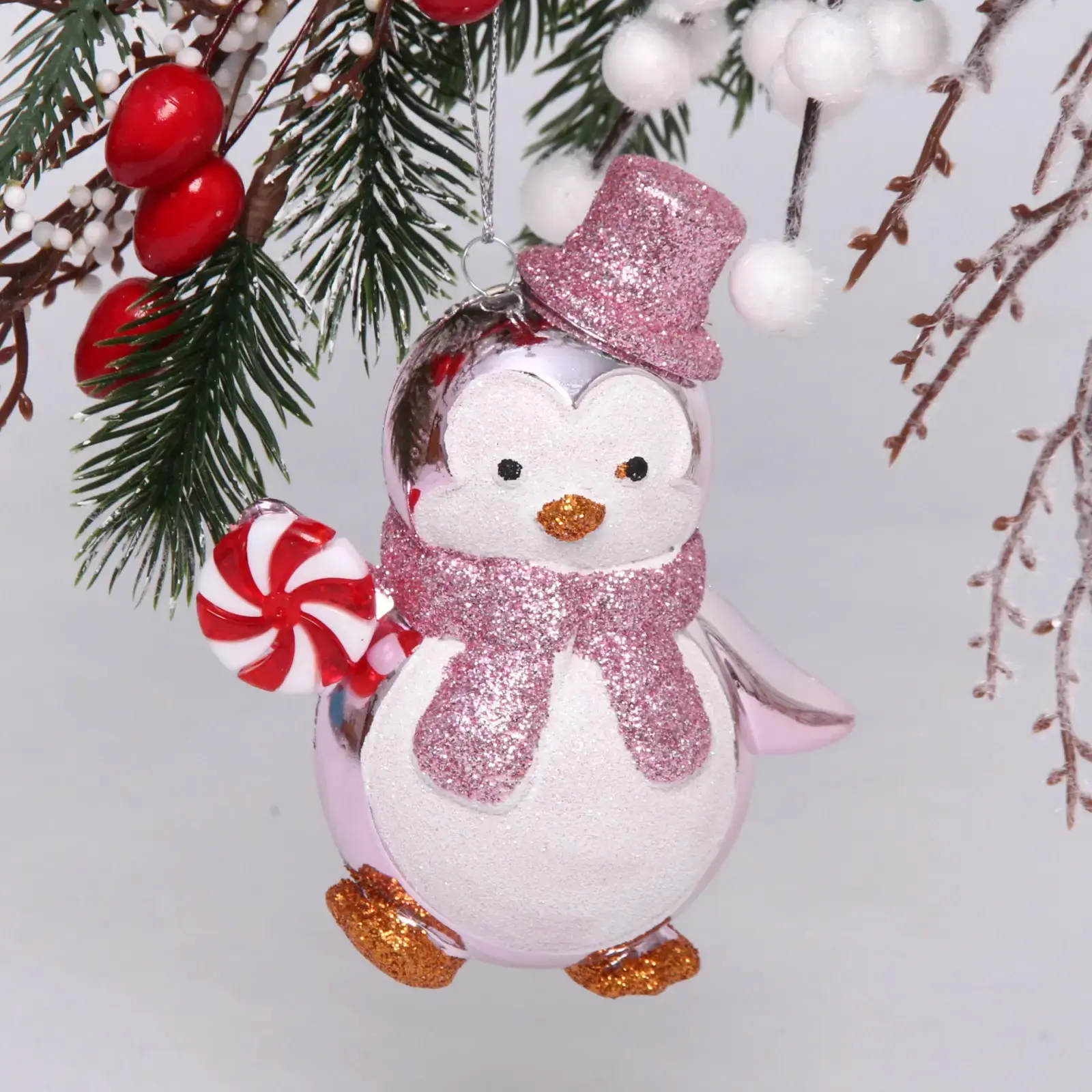 Создайте атмосферу праздника с этой яркой ёлочной игрушкой, которая станет настоящим украшением вашей новогодней ёлки. Пингвин с леденцом выполнен из качественного пластика и имеет блестящую поверхность, что придаёт ему особый шарм. Его розовая шляпа и шарф добавляют игривости и веселья, а красно-белая конфета в лапке делает его ещё более привлекательным.