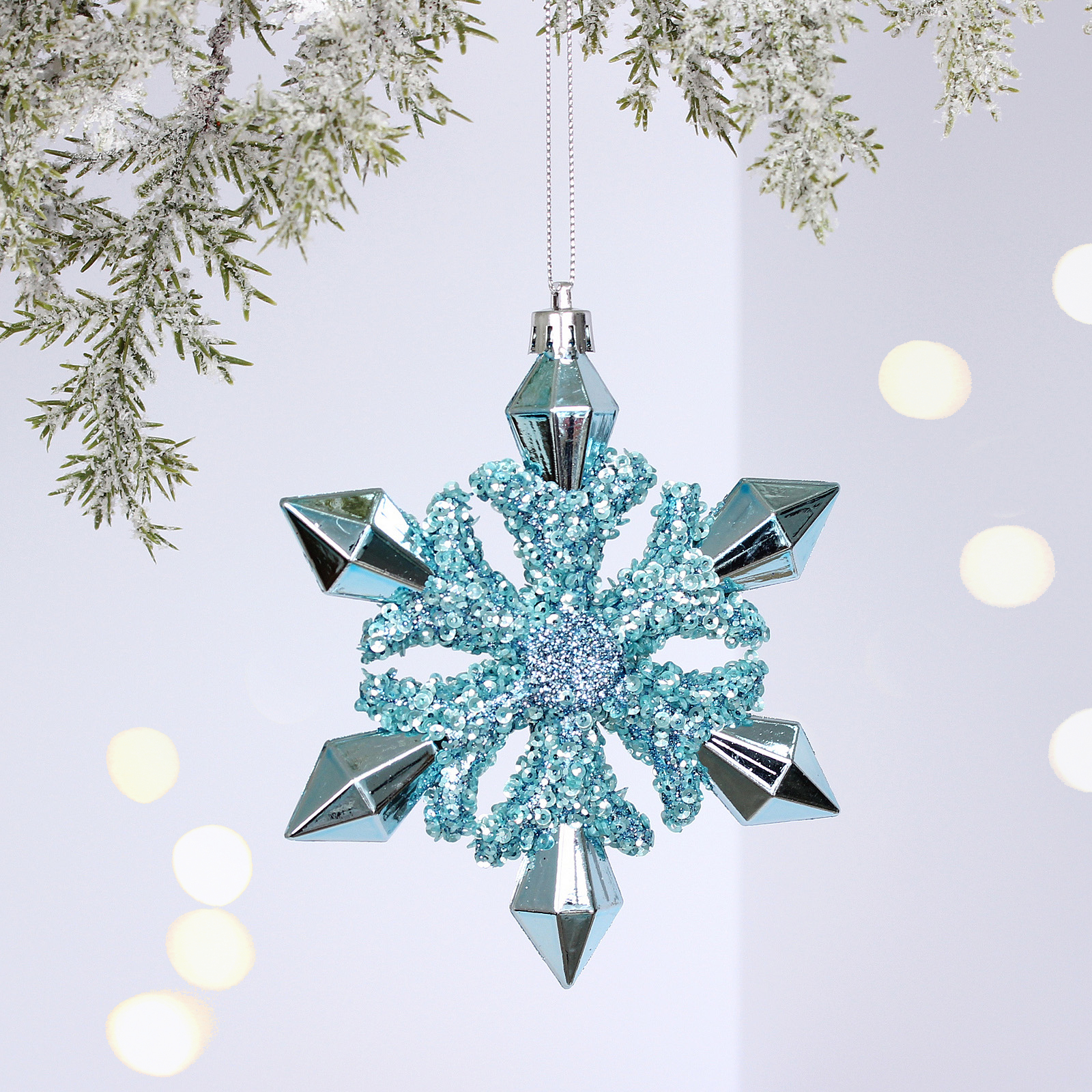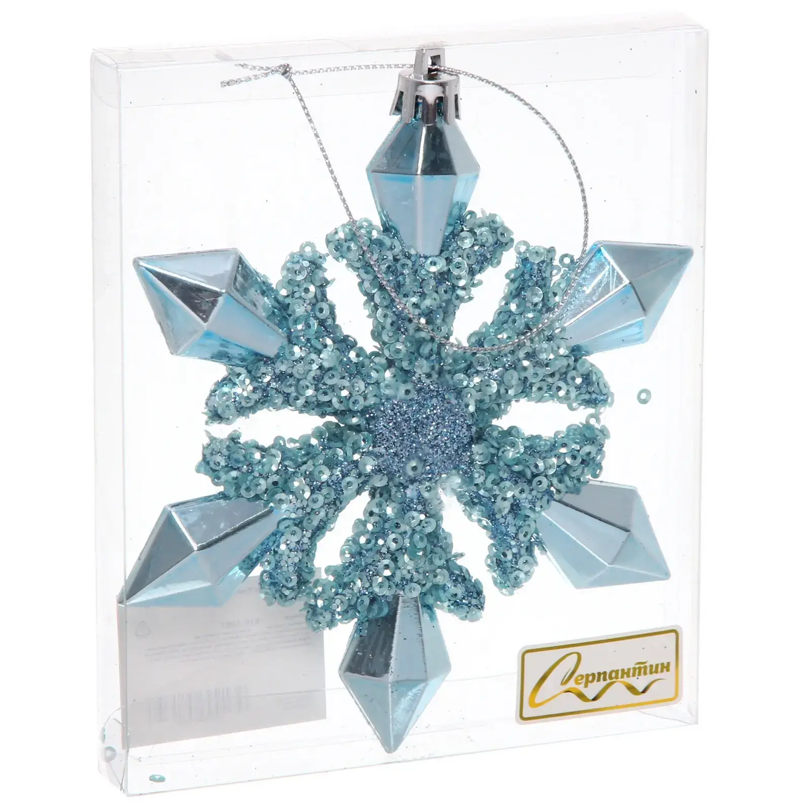Ёлочная игрушка «Сияющая снежинка» 13*1.5*13.5 см, Голубой, пластик, для елки и декорирования