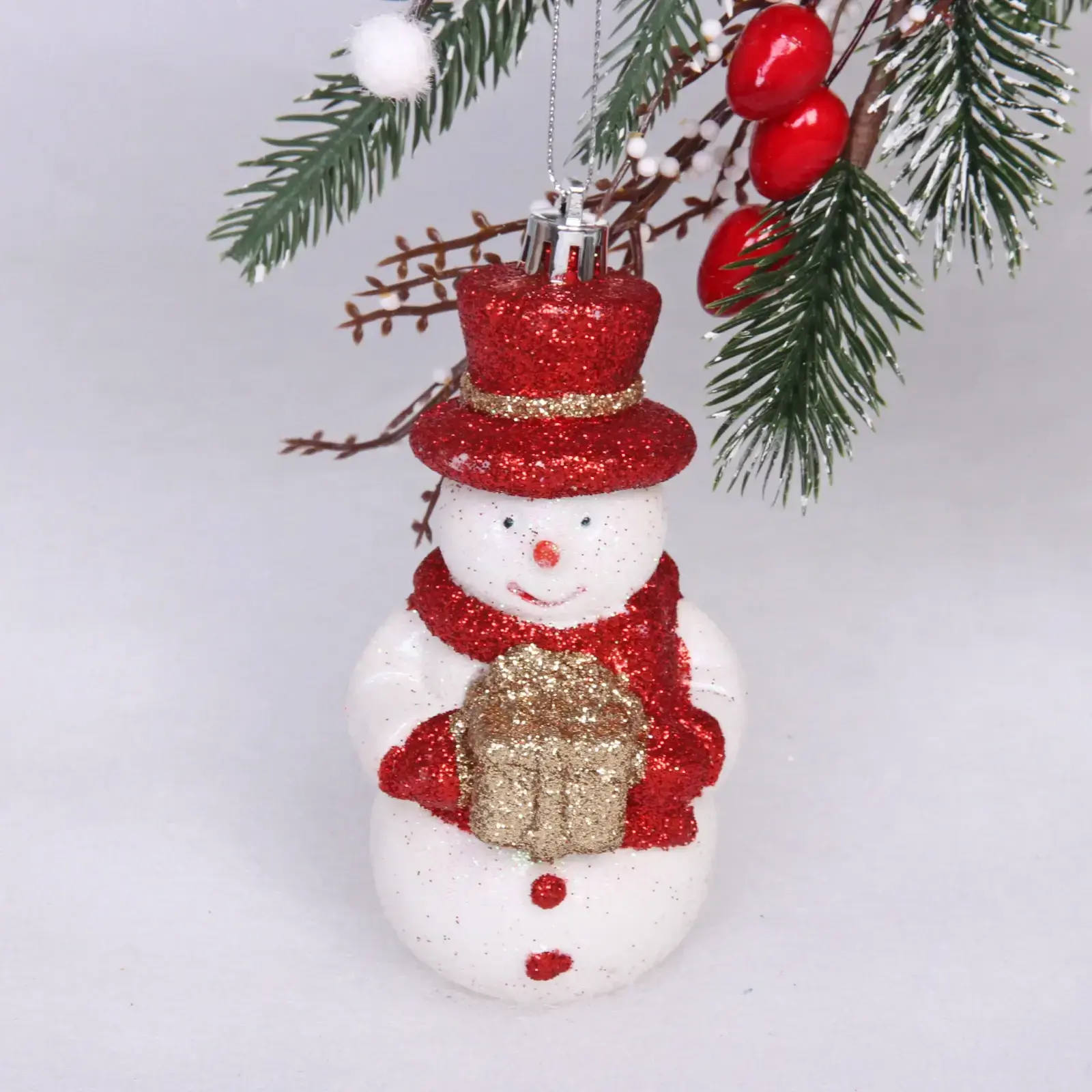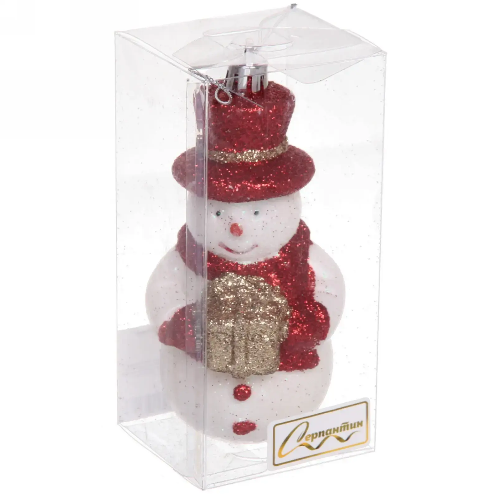 Эта игрушка не только красива, но и практична. Благодаря блестящей отделке и ярким цветам, она привлекает внимание и создает праздничное настроение. Снеговик одет в красную шапку и шарф, а в руках держит подарочную коробку, что делает его ещё более привлекательным. Размеры игрушки 6х5,5х12 см позволяют легко разместить её на ёлке или на праздничном столе.