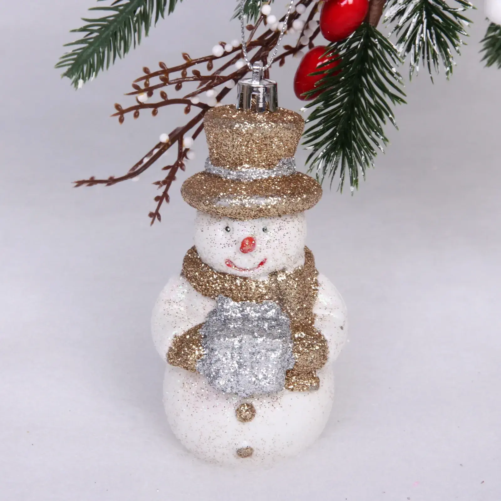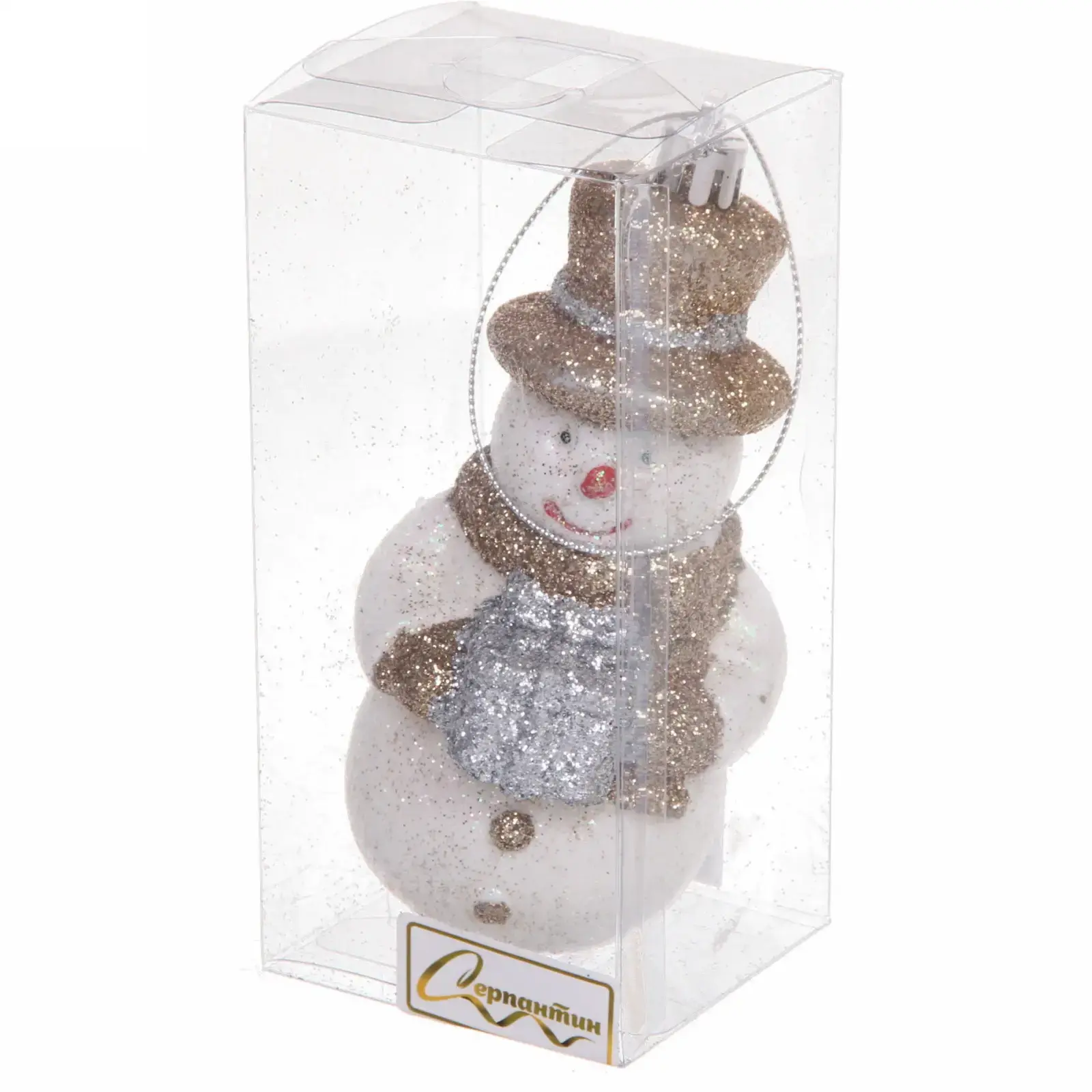 Почему стоит выбрать именно эту игрушку? Во-первых, она изготовлена из качественного пластика, что обеспечивает её долговечность и устойчивость к повреждениям. Во-вторых, блестящий декор придаёт ей праздничный вид, а размер 12 см делает её универсальной для любого стиля оформления. Снеговик одет в золотистую шляпу и шарф, что добавляет ему очарования и делает его идеальным подарком для близких.