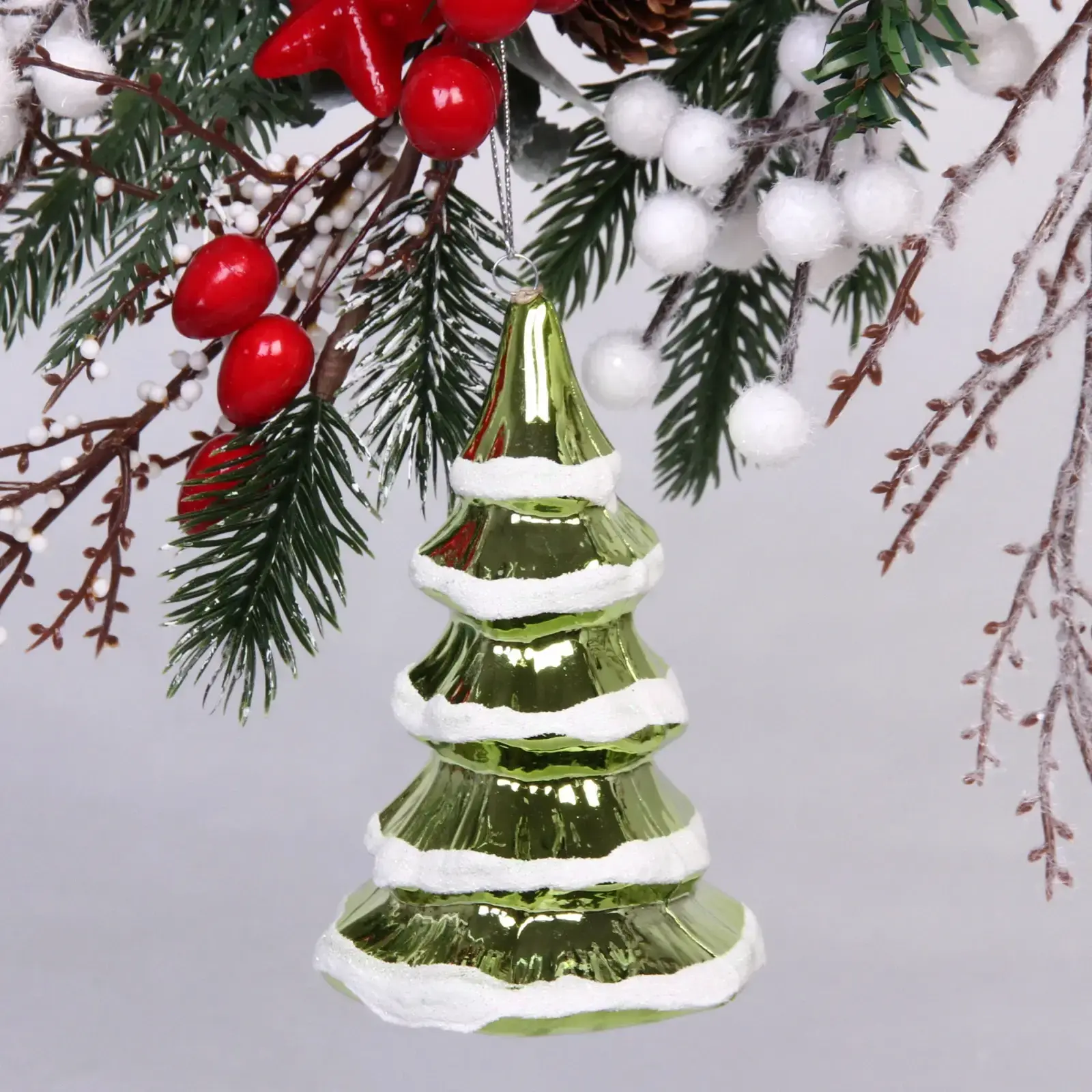 Эта уникальная ёлочная игрушка станет ярким акцентом в вашем новогоднем оформлении. Выполненная в зелёном цвете с белыми полосками, имитирующими снег, она добавит уют и волшебство в ваш дом. Размеры игрушки 7х7х11,5 см делают её идеальной для украшения как ёлки, так и других праздничных композиций.