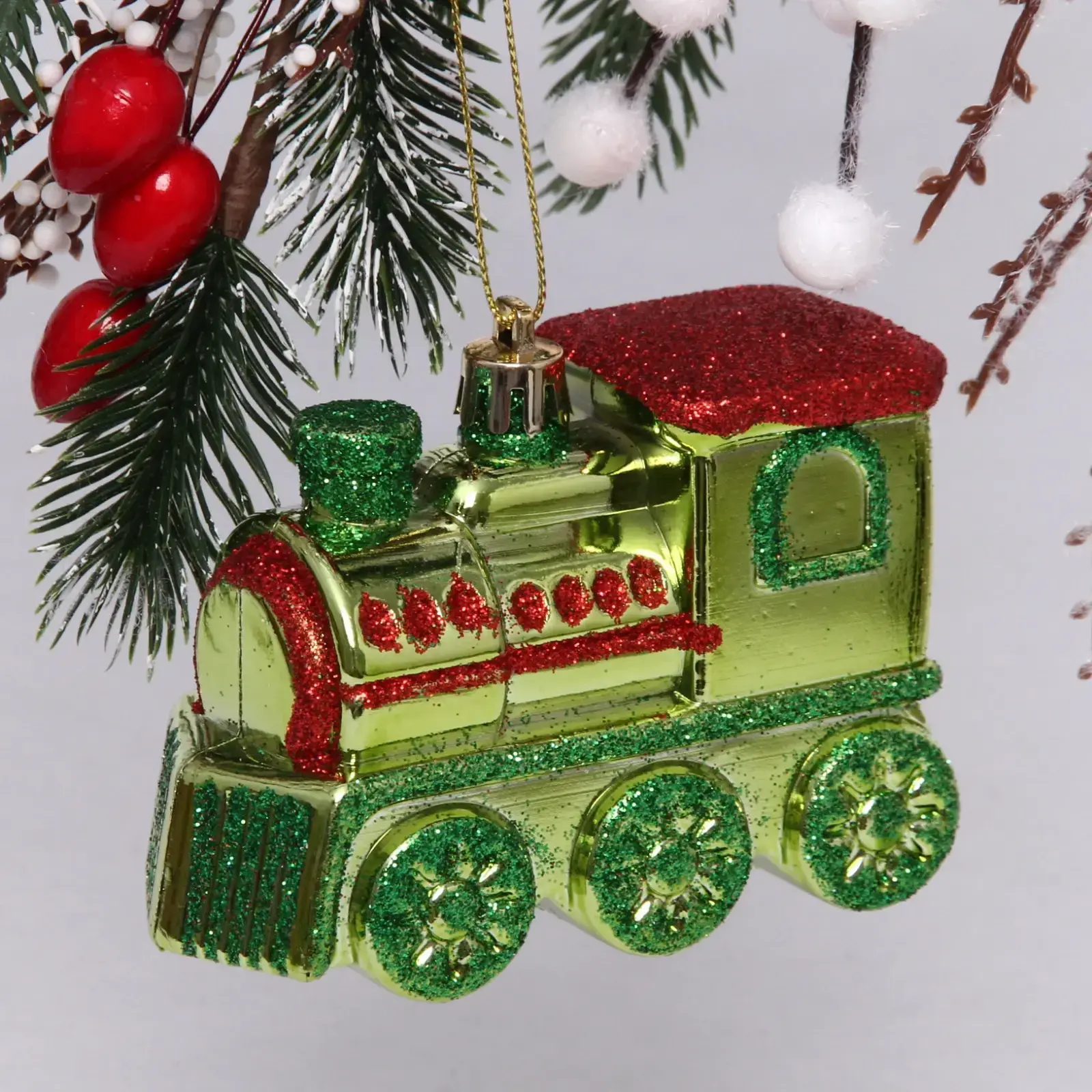 Почему стоит выбрать именно эту игрушку? Во-первых, её оригинальный дизайн в виде паровоза с детализированными элементами, такими как колёса и дымовая труба, делает её уникальной. Во-вторых, зелёный цвет с красными блестками добавляет яркости и праздничного настроения. В-третьих, игрушка легко крепится на ёлку благодаря удобной петельке, что делает процесс декорирования простым и приятным.