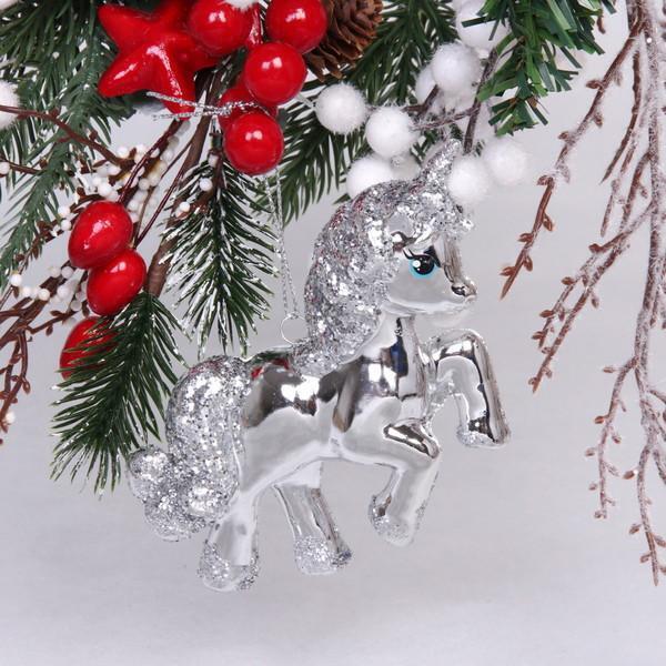 Украсьте новогоднюю ель изящной деталью, которая перенесёт вас в мир чудес. Серебристый единорог с переливающимися блестками создаёт атмосферу сказки и добавляет в интерьер лёгкость и сияние. Благодаря утончённым формам и проработанным деталям, игрушка станет центральным акцентом среди остальных украшений.