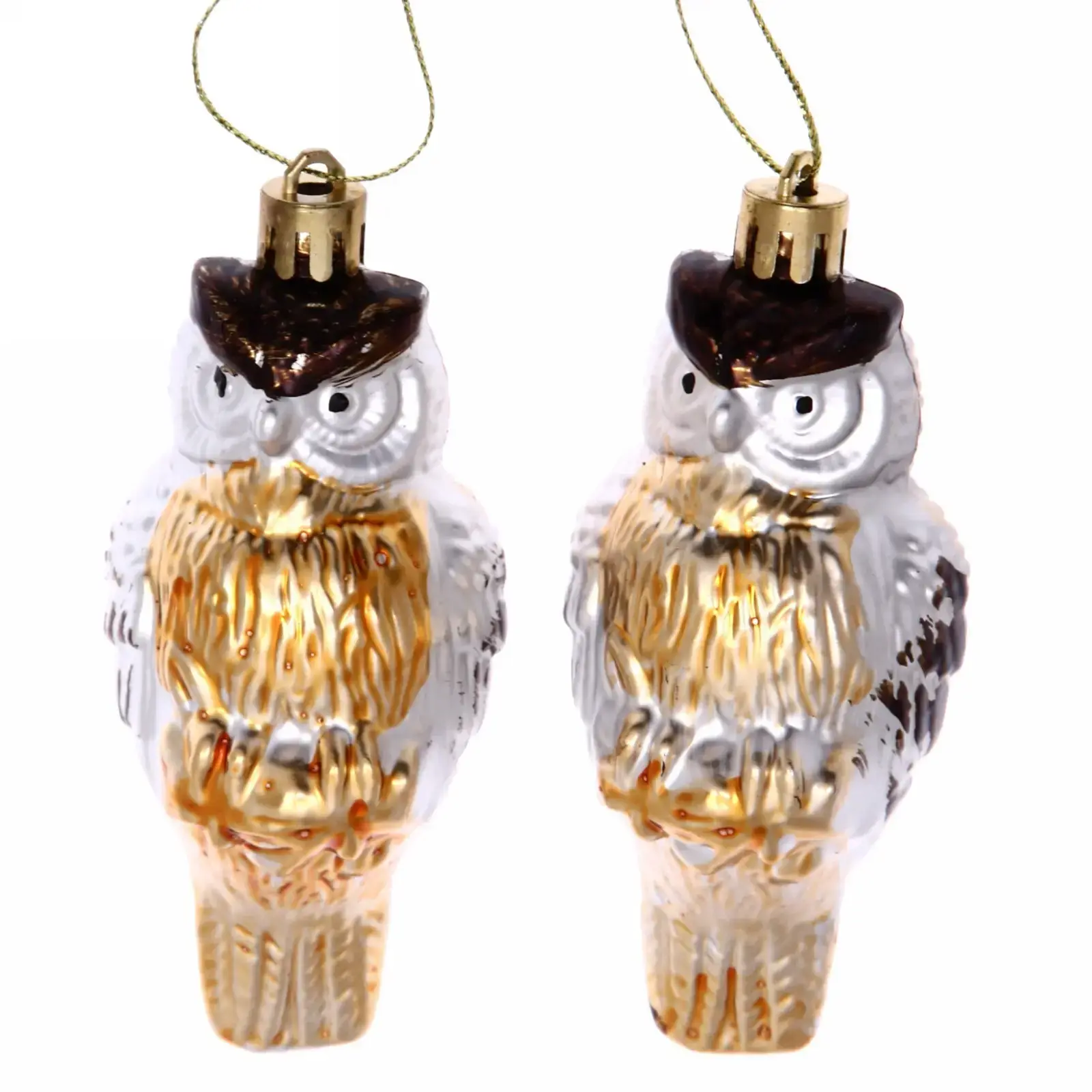 Эти изысканные ёлочные игрушки в виде сов станут идеальным украшением для вашей новогодней ёлки. Их благородные серебристо-золотистые оттенки создают атмосферу праздничной роскоши и уюта.