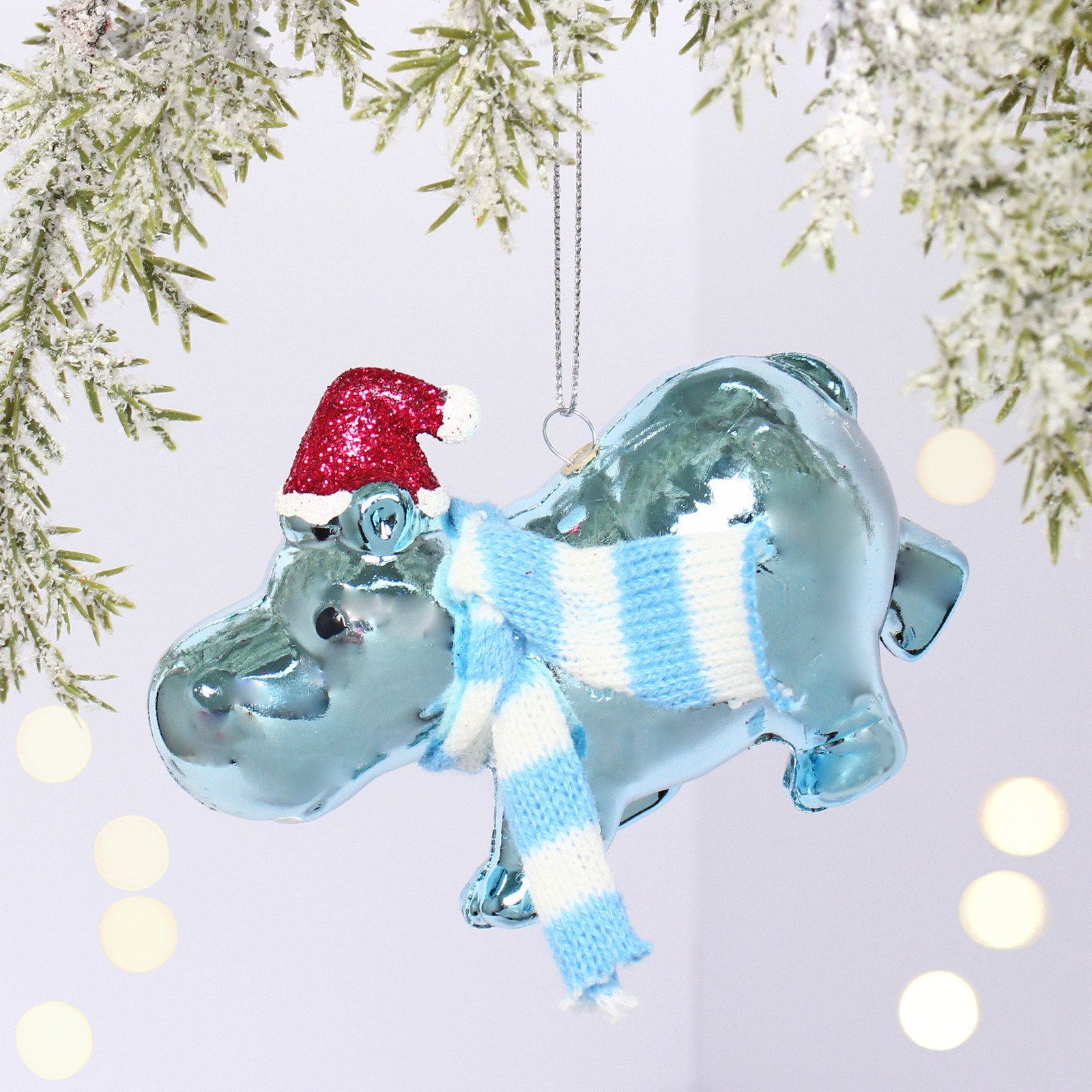 Создайте волшебное новогоднее настроение с ёлочной игрушкой «Весёлый бегемот». Эта яркая фигурка выполнена в голубом цвете и станет удивительным акцентом на вашей ёлке или в любом уголке вашего дома. Благодаря своему забавному дизайну и блестящей поверхности она привлекает внимание и дарит улыбку каждому, кто её увидит.