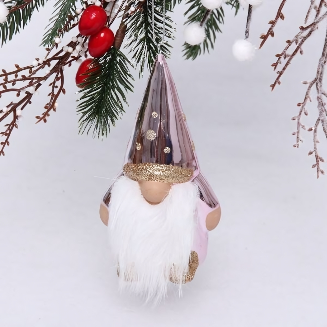 Ёлочная игрушка "Весёлый лесовичок", розовый, блестящий, 6,5*5,5*13 см