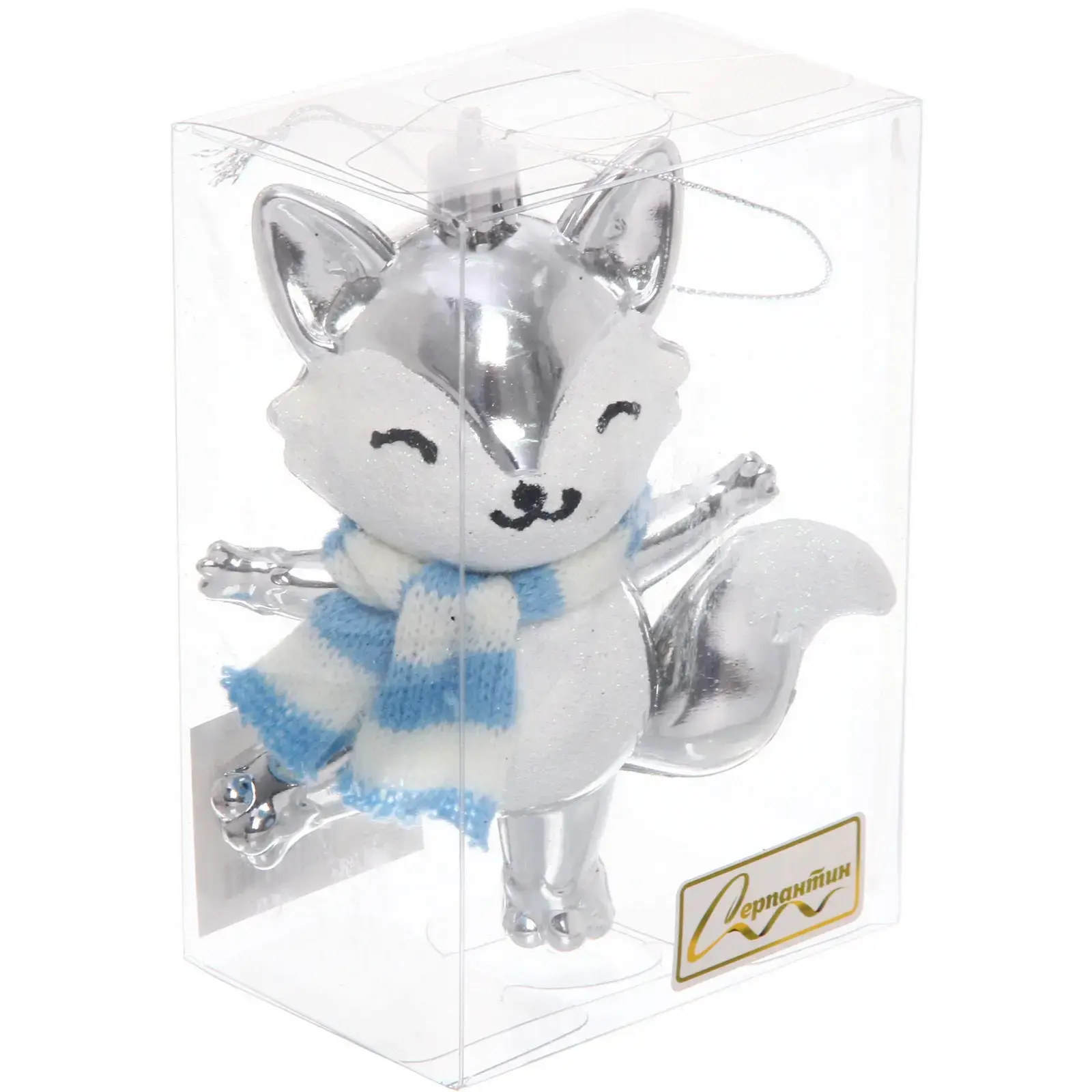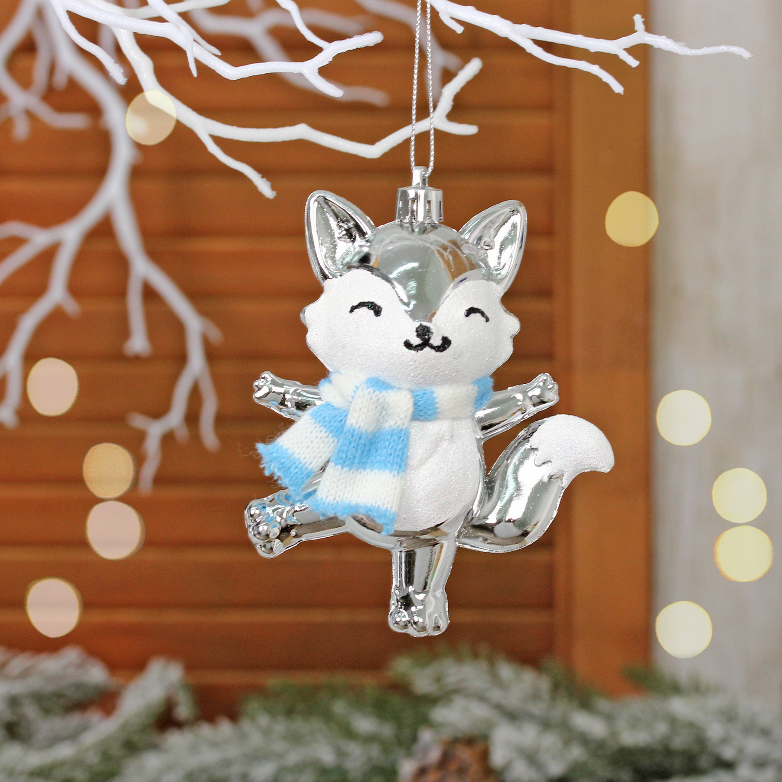 Ёлочная игрушка «Весёлый лисёнок» 8.8*5.5*13.5 см, Серебро, пластик, для елки и декорирования