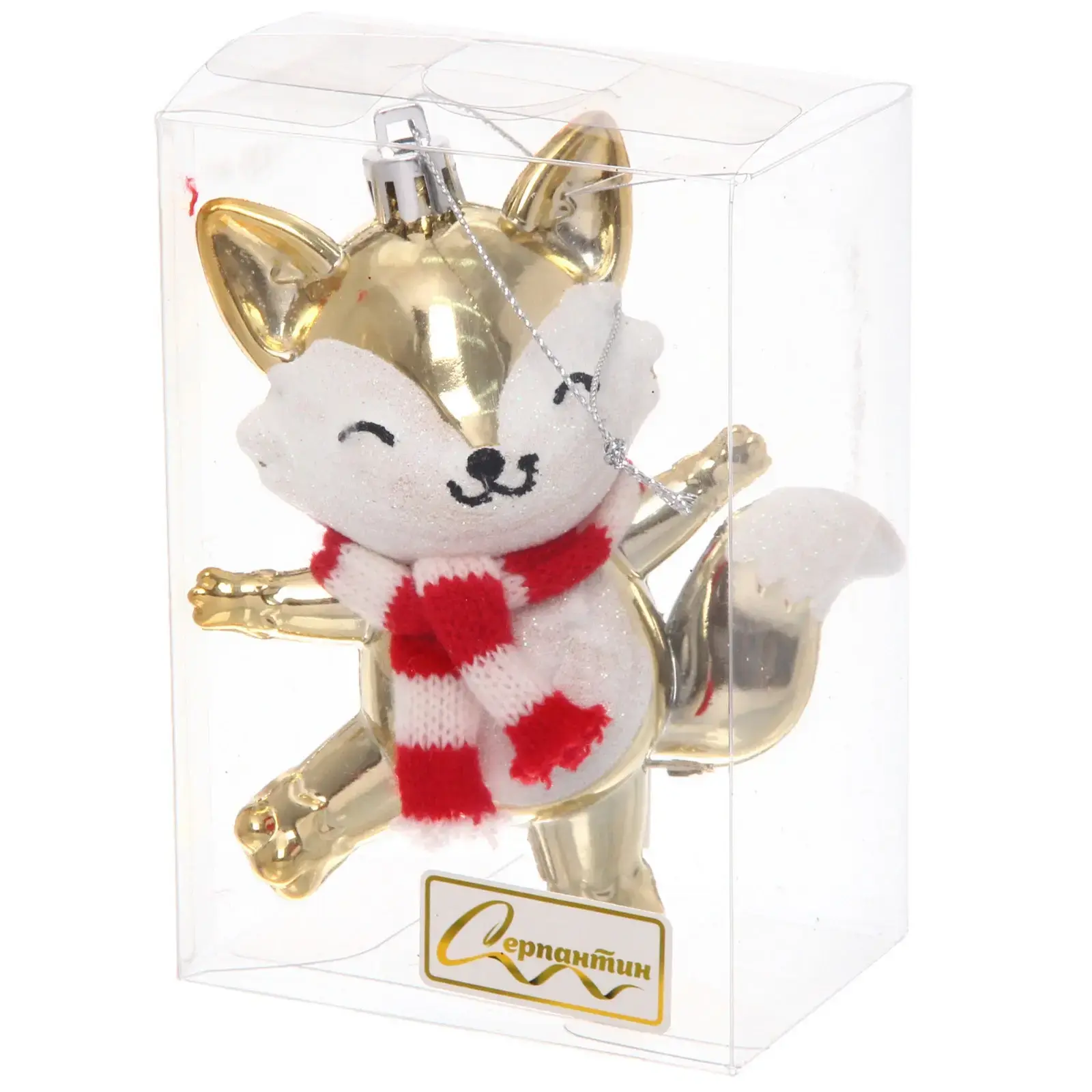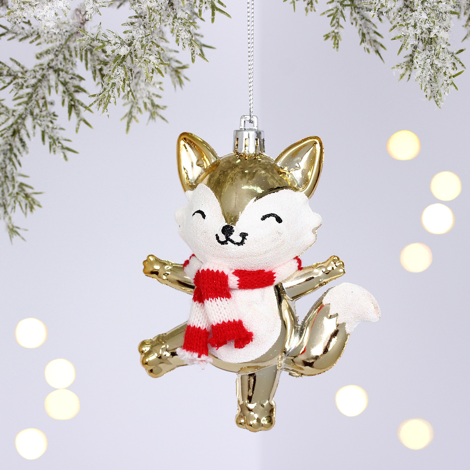 Лисёнок изготовлен из качественного пластика, устойчивого к механическим повреждениям. Золотистый цвет с элементами белого и красного создает праздничное настроение и гармонично сочетается с любыми другими украшениями.