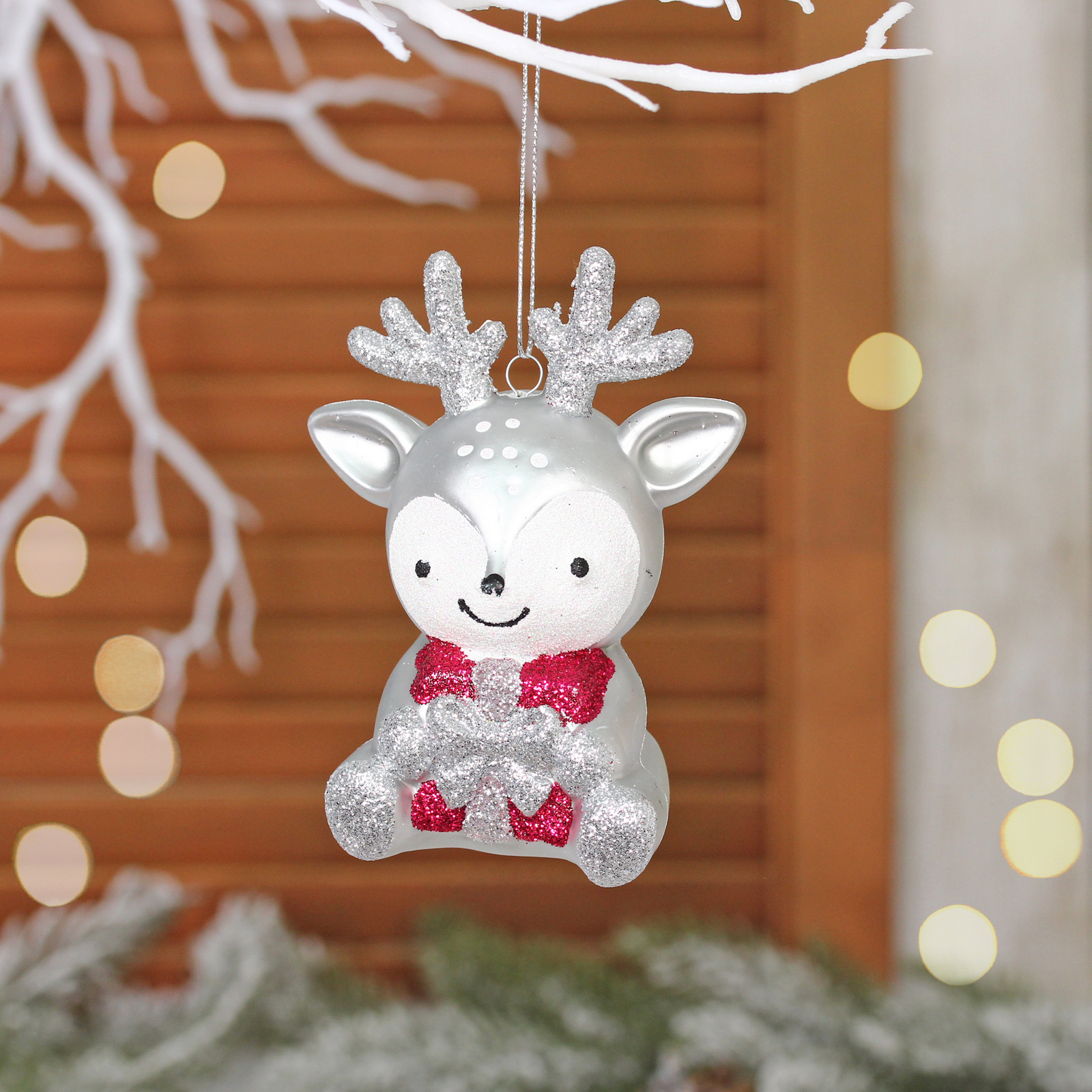 Очаровательный оленёнок с блестящими акцентами станет главным украшением вашей ёлки. Игрушка изготовлена из прочного пластика, который сохранит форму даже при активном использовании.