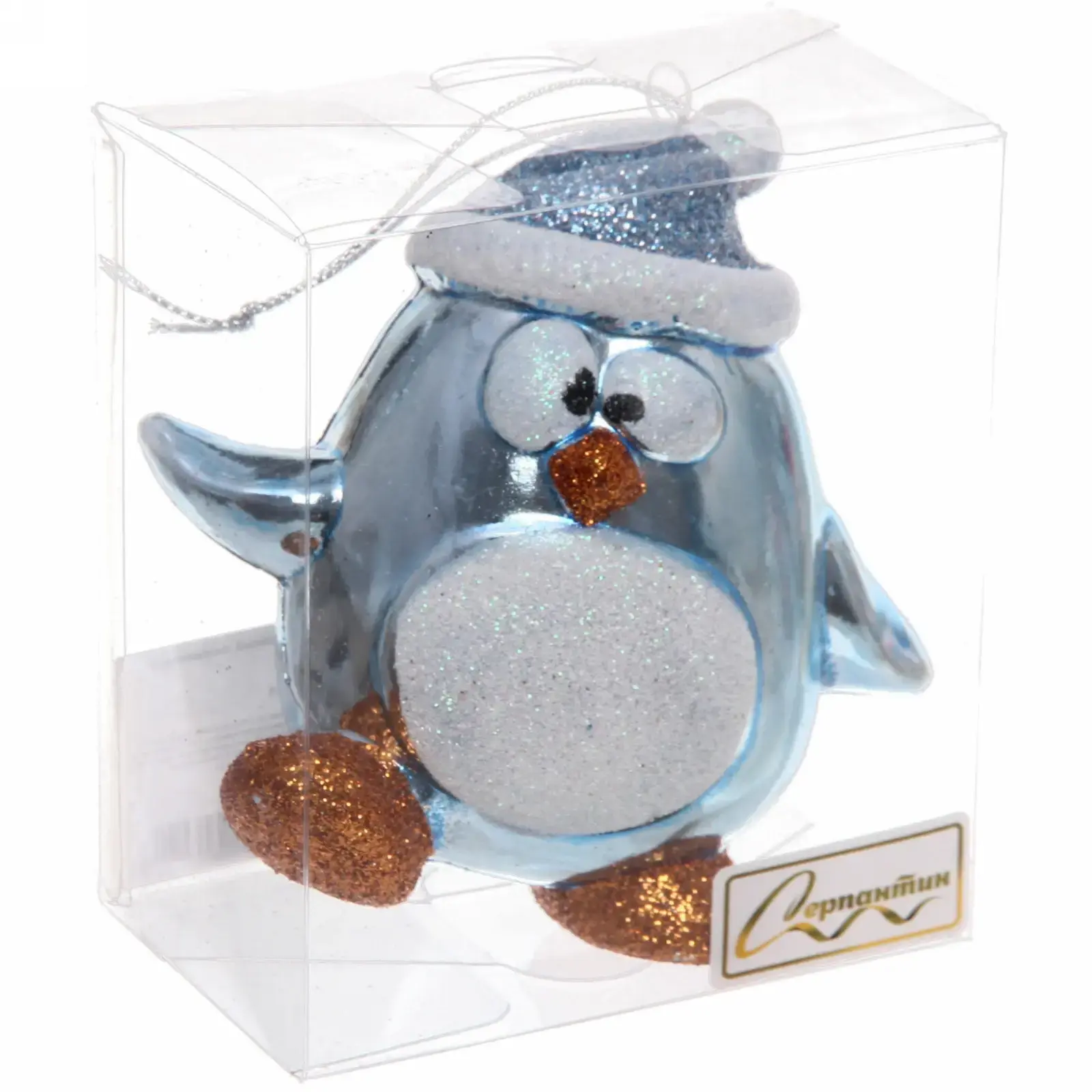 Размер игрушки составляет 11х6х11 см, что делает её компактной и удобной для размещения на ёлке. Изготовлена из прочного пластика, она устойчива к повреждениям и прослужит вам не один год. Пингвин имеет крупные глаза и оранжевый клюв, что добавляет ему очарования. Упакована в прозрачную пластиковую коробку, что позволяет удобно хранить её после праздников.