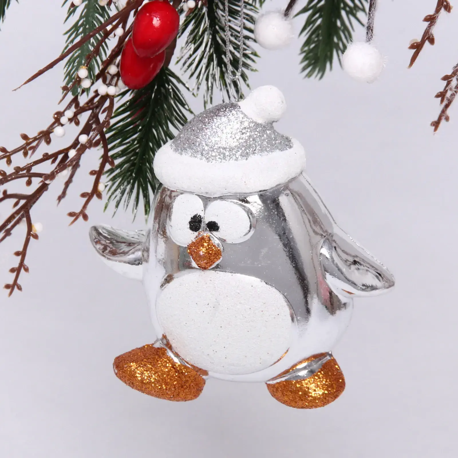 Создайте атмосферу праздника с ёлочной игрушкой «Весёлый пингвинёнок». Эта стильная игрушка выполнена в серебристом цвете и станет ярким акцентом на вашей новогодней ёлке. Благодаря своему игривому дизайну, она привнесет радость и уют в ваш дом, создавая незабываемые воспоминания о праздниках.
