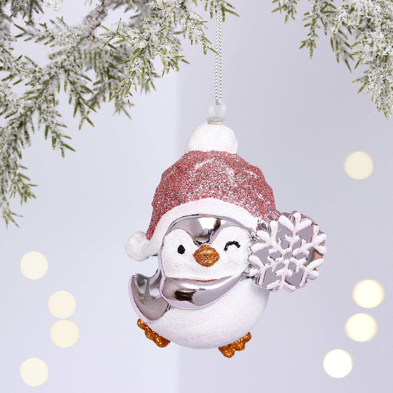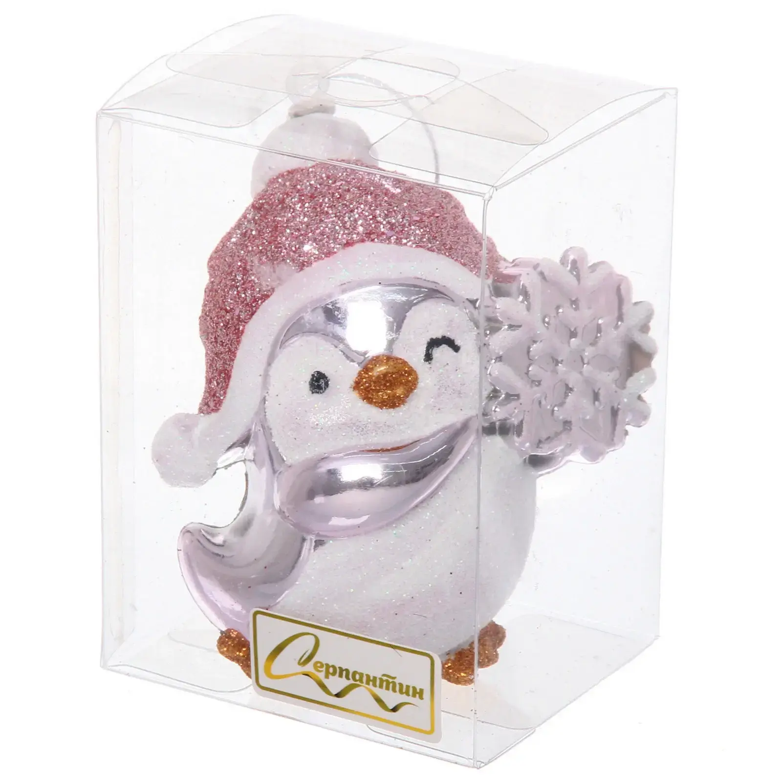 Ёлочная игрушка «Весёлый пингвинёнок» 8*6*9.5 см, Розовый, пластик, для елки и декорирования