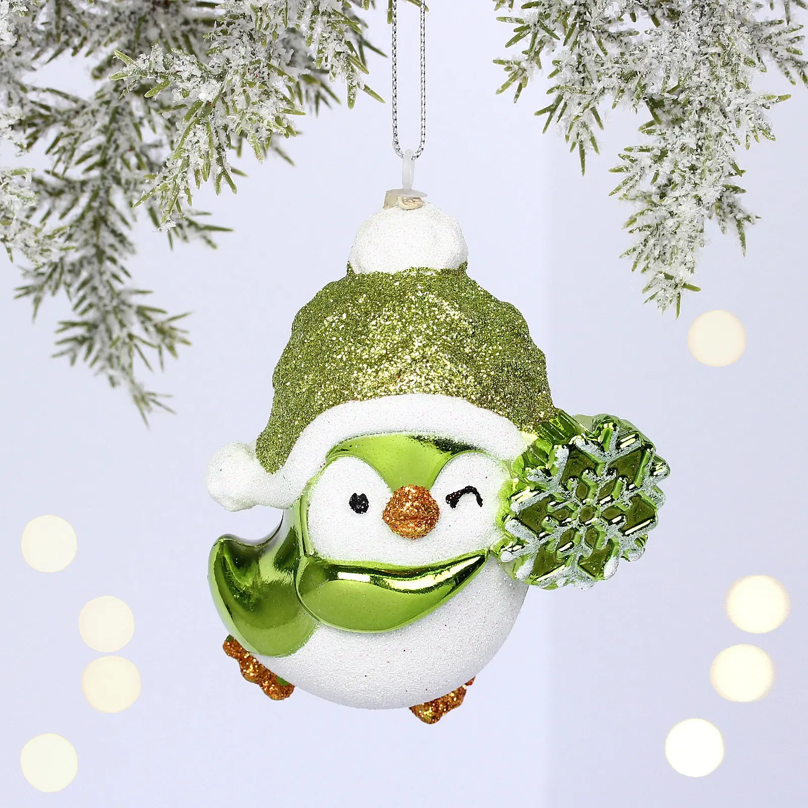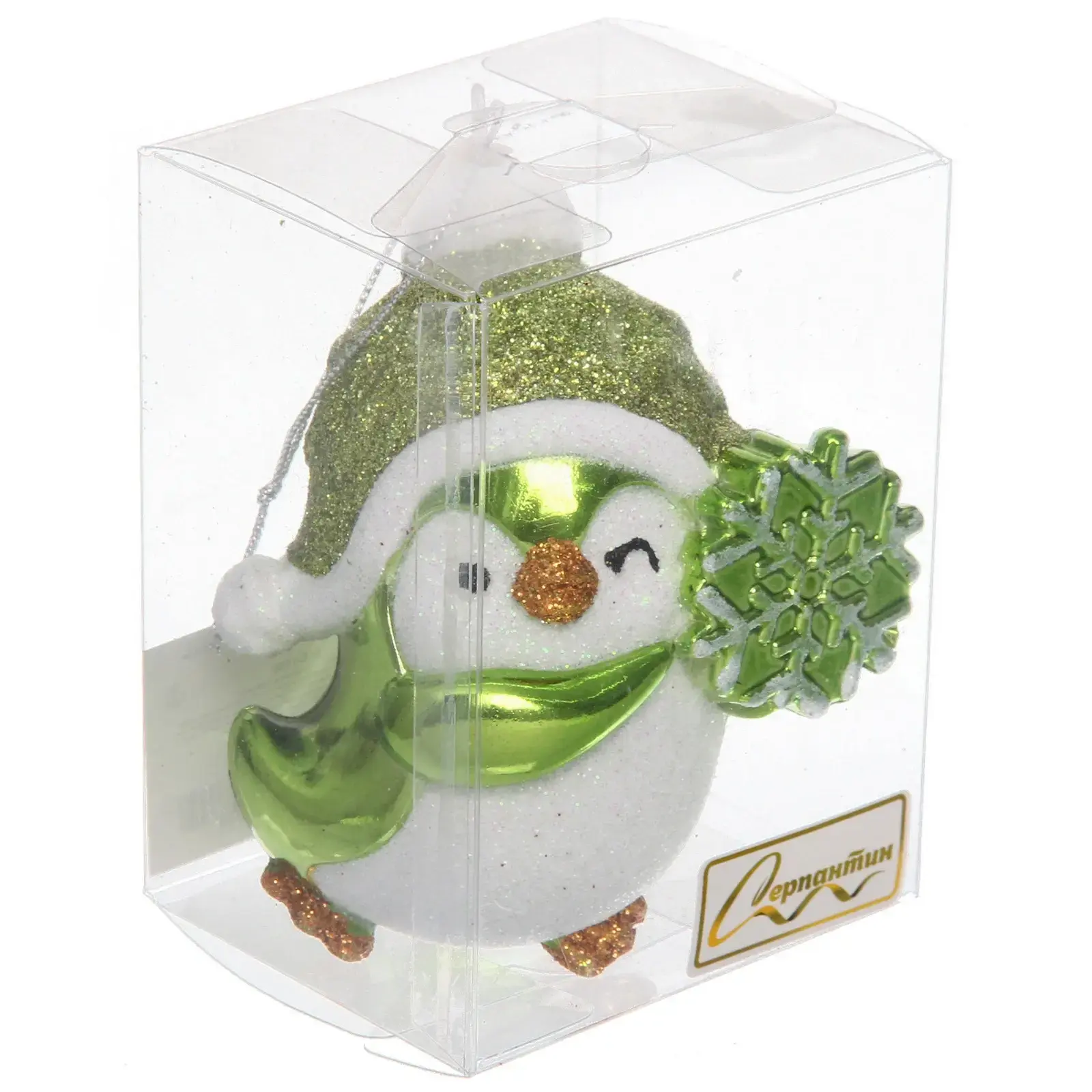 Ёлочная игрушка «Весёлый пингвинёнок» 8*6*9.5 см, Салатовый, пластик, для елки и декорирования