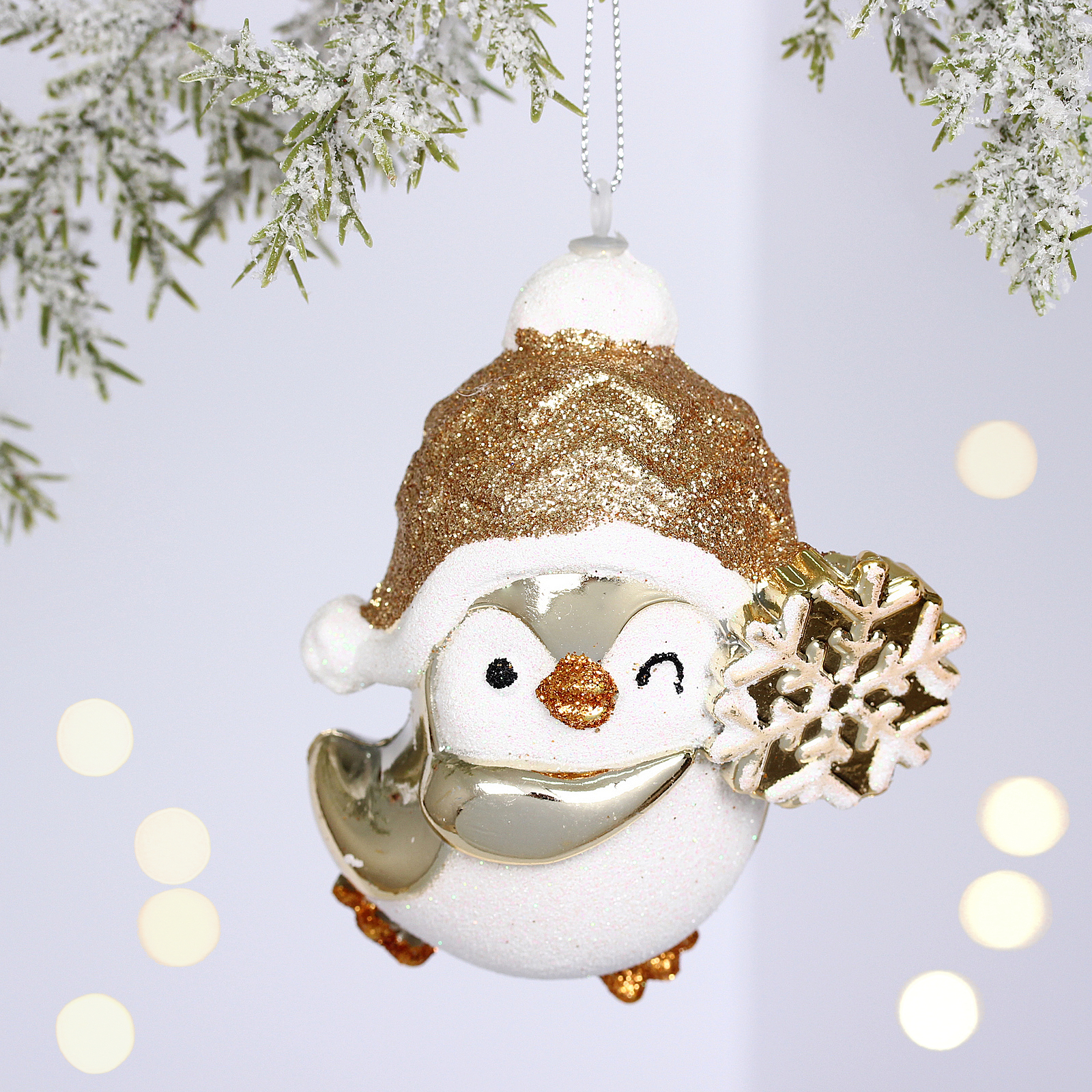 Ёлочная игрушка «Весёлый пингвинёнок» 8*6*9.5 см, Шампань, пластик, для елки и декорирования