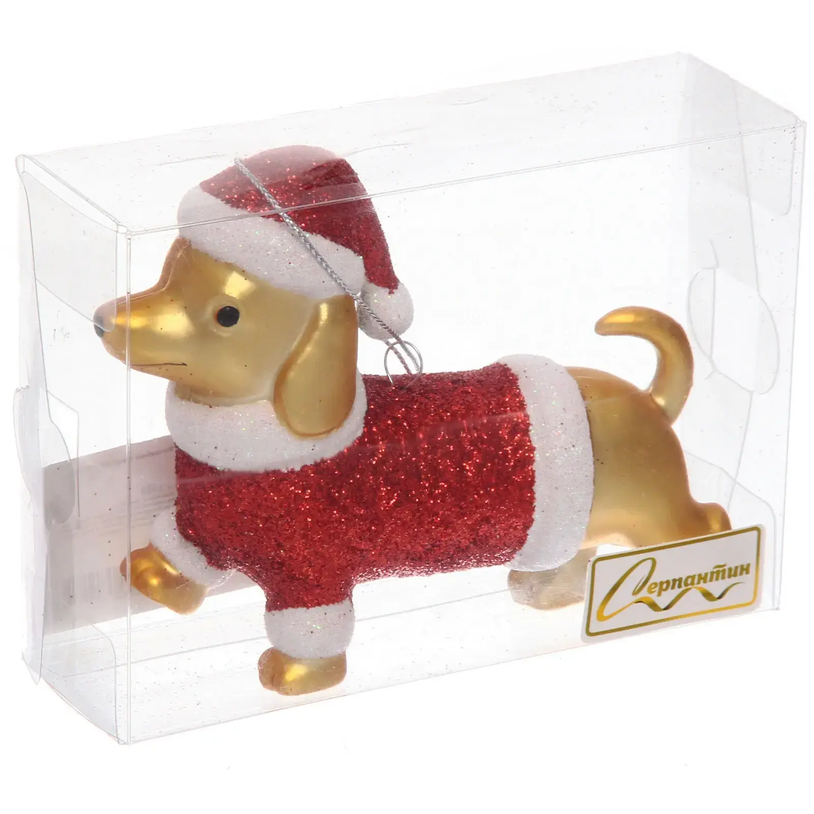 Ёлочная игрушка «Волшебная такса» 3,5*12*8,5 см, Красный, пластик, для елки и декорирования