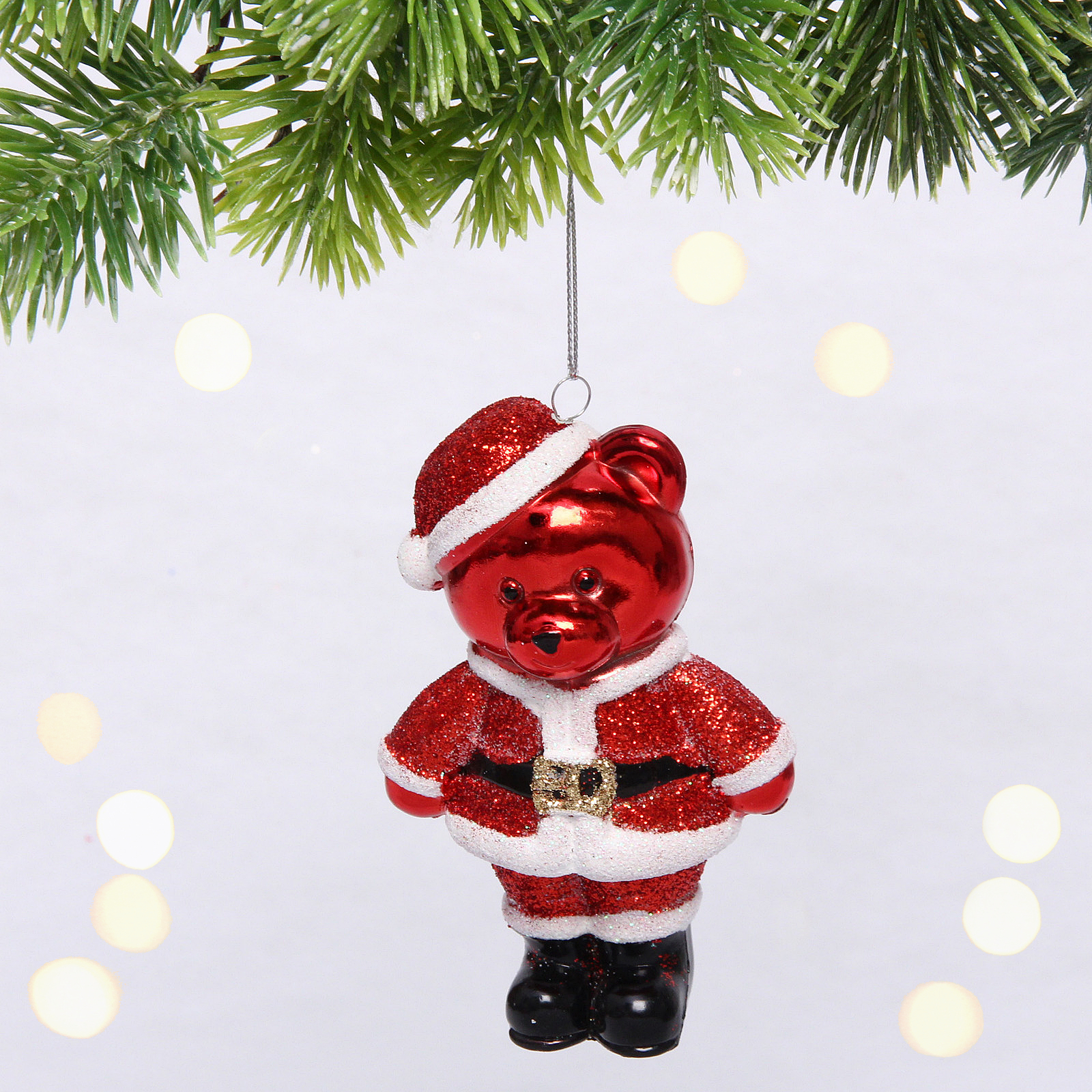 Почему стоит выбрать именно эту игрушку? Во-первых, её яркий красный цвет с блестящей отделкой привлекает внимание и создает праздничное настроение. Во-вторых, медвежонок одет в костюм Деда Мороза, что добавляет ему очарования и делает его идеальным для новогодних праздников. В-третьих, игрушка выполнена из безопасных материалов, что позволяет использовать её даже в домах с маленькими детьми.