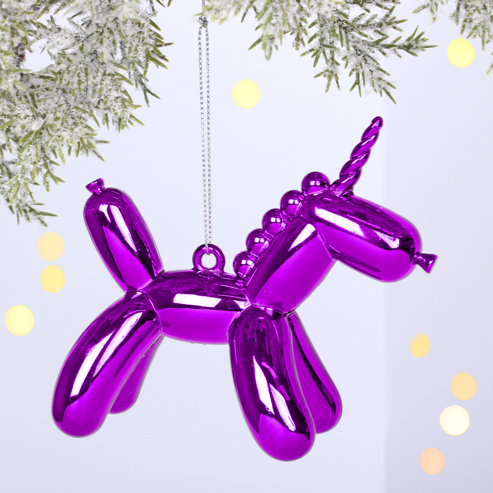 Фиолетовый единорог с блестящей поверхностью станет ярким акцентом вашей новогодней ёлки и подарит ощущение настоящего чуда. Его необычная форма balloon-скульптуры привлечёт взгляды гостей и вызовет улыбки у домочадцев.