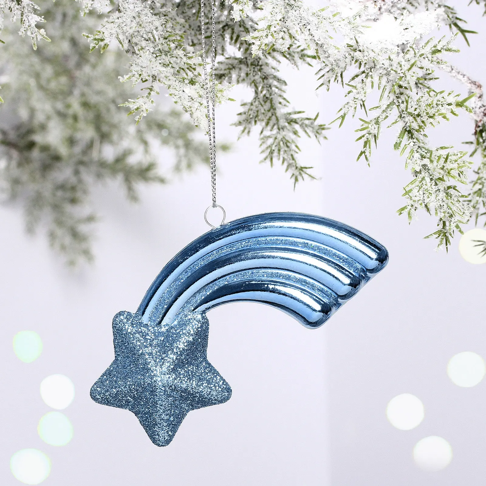 Ёлочная игрушка «Звезда желаний» 11*5*1,5 см, голубой, пластик, для елки и декорирования