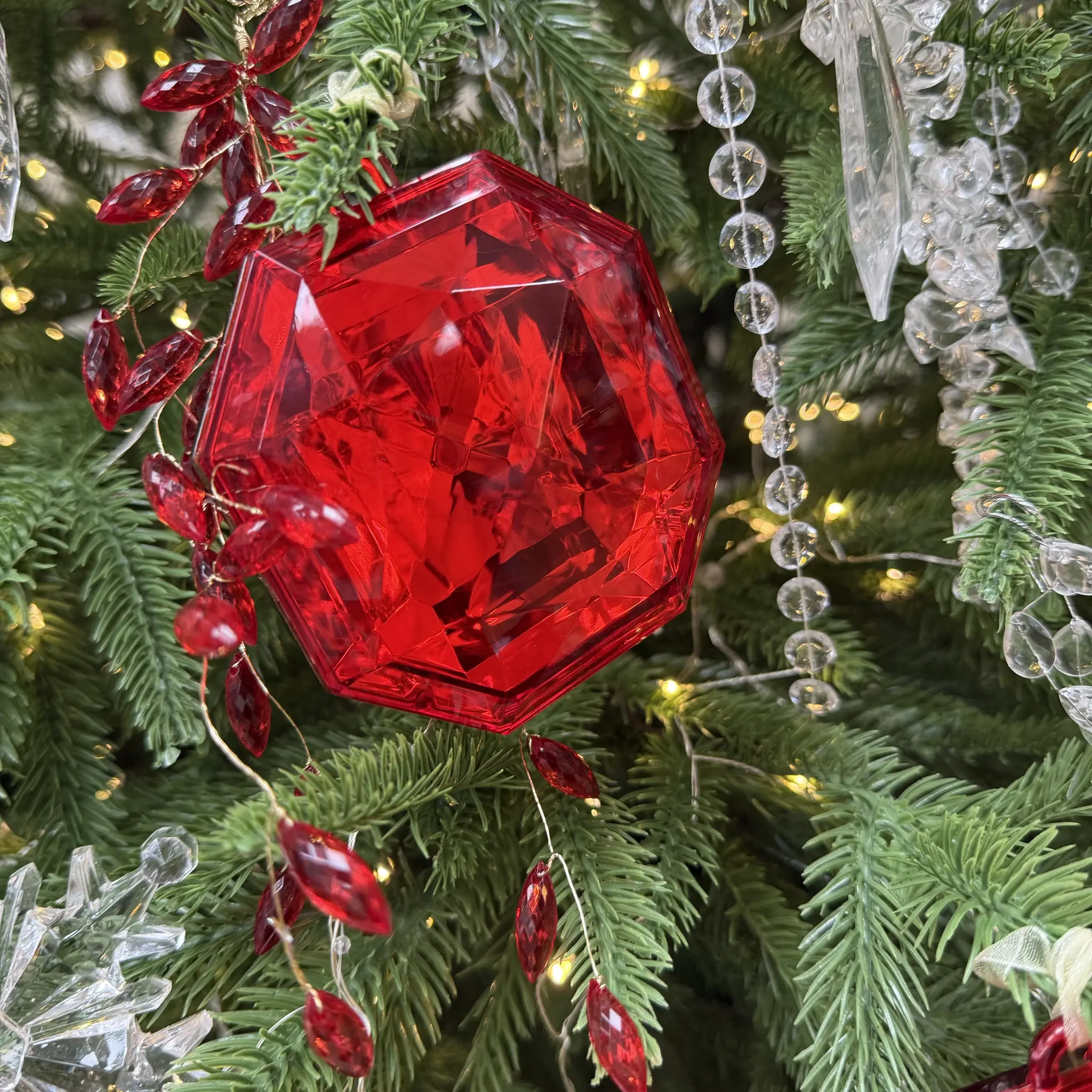 Красное ёлочное украшение «DIAMOND - Elegant» станет изысканным акцентом в вашем новогоднем декоре. Его форма гранёного кристалла притягивает взгляды и переливается в свете гирлянд, создавая магическую атмосферу.
