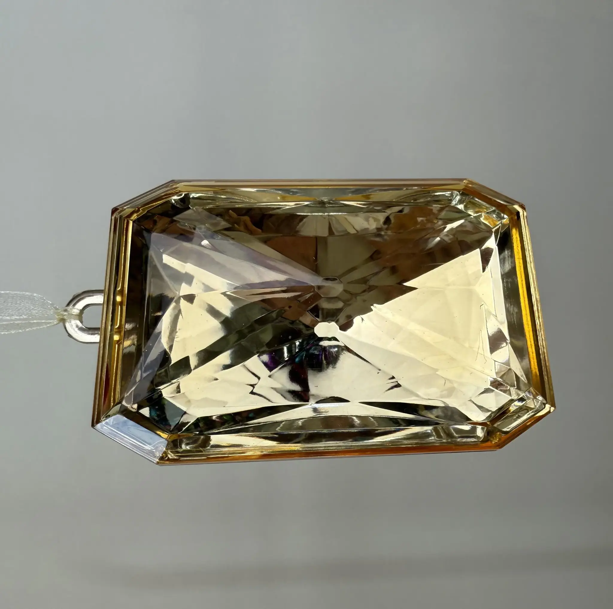 Добавьте в праздничное оформление утончённости и элегантного сияния с ёлочным украшением "DIAMOND - Shine". Его продолговатая форма с фасеточной огранкой создаёт эффект россыпи бликов при свете гирлянд, усиливая ощущение новогоднего волшебства. Золотисто-прозрачная палитра гармонично сочетается с любыми цветами новогодних игрушек и декора.