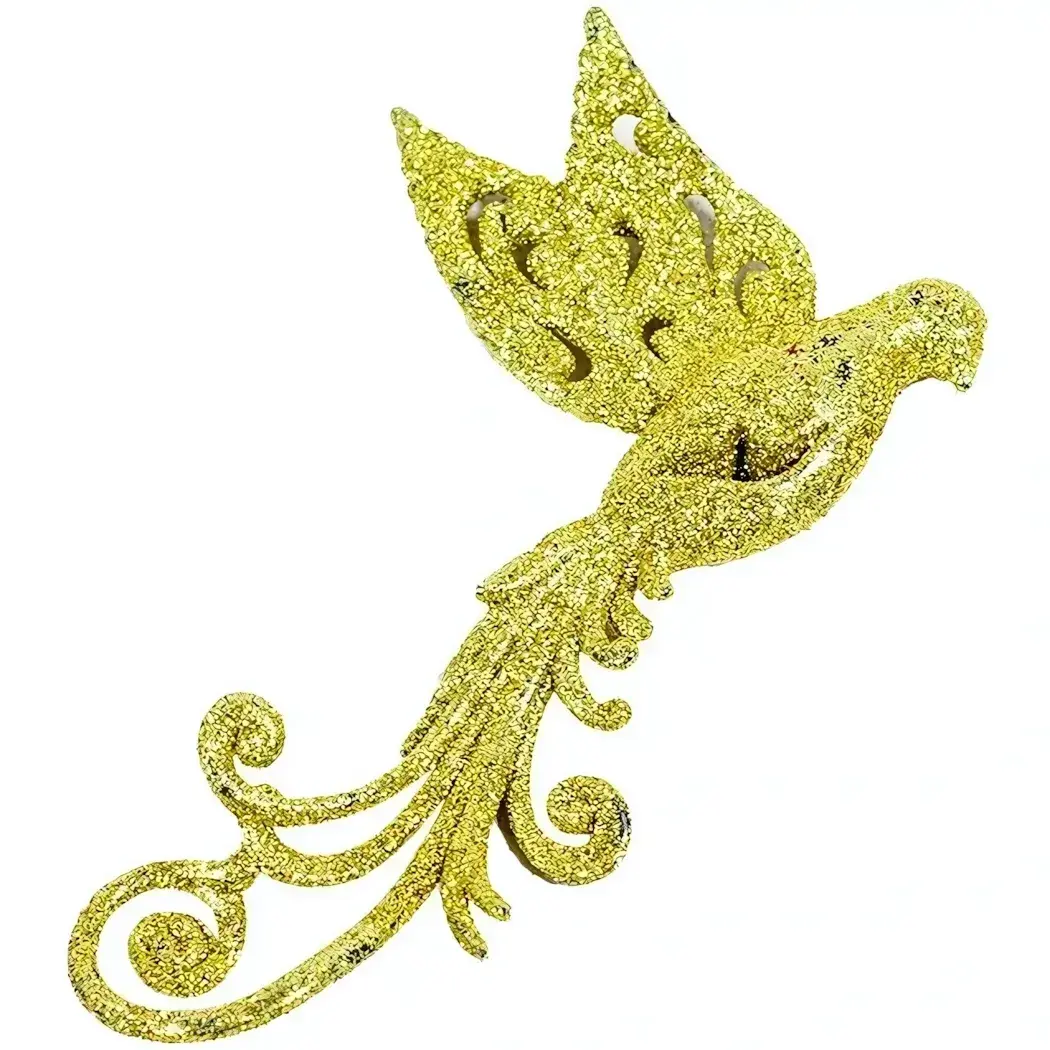 Ёлочное украшение Птички, 2 шт/уп, 18 см, пластик, цвет золотой с блестками