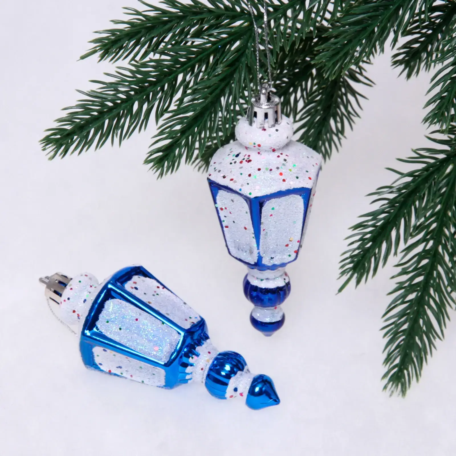 Ёлочные игрушки «Фонарик» 11 см (набор 2 шт), синий, пластик, для елки и декорирования