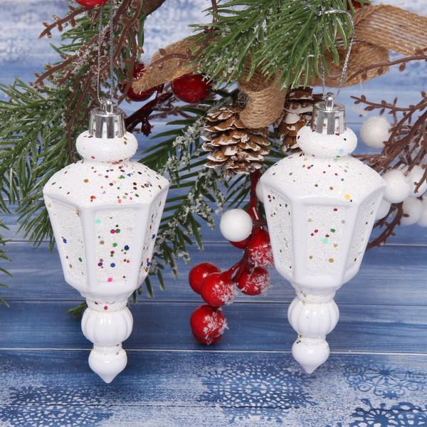 Ёлочные украшения "Фонарик" 11см, белые с блестками, набор 2шт