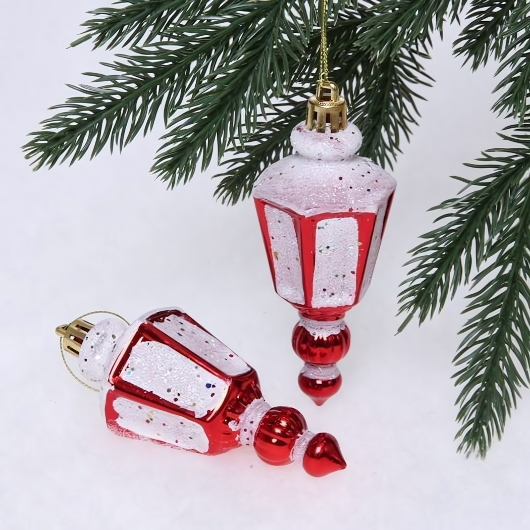 Создайте атмосферу волшебства с помощью двух стильных фонарных игрушек, которые своими блестящими гранями и насыщенным красным оттенком мгновенно привлекут внимание гостей и подарят ощущение праздника уже с первой минуты.