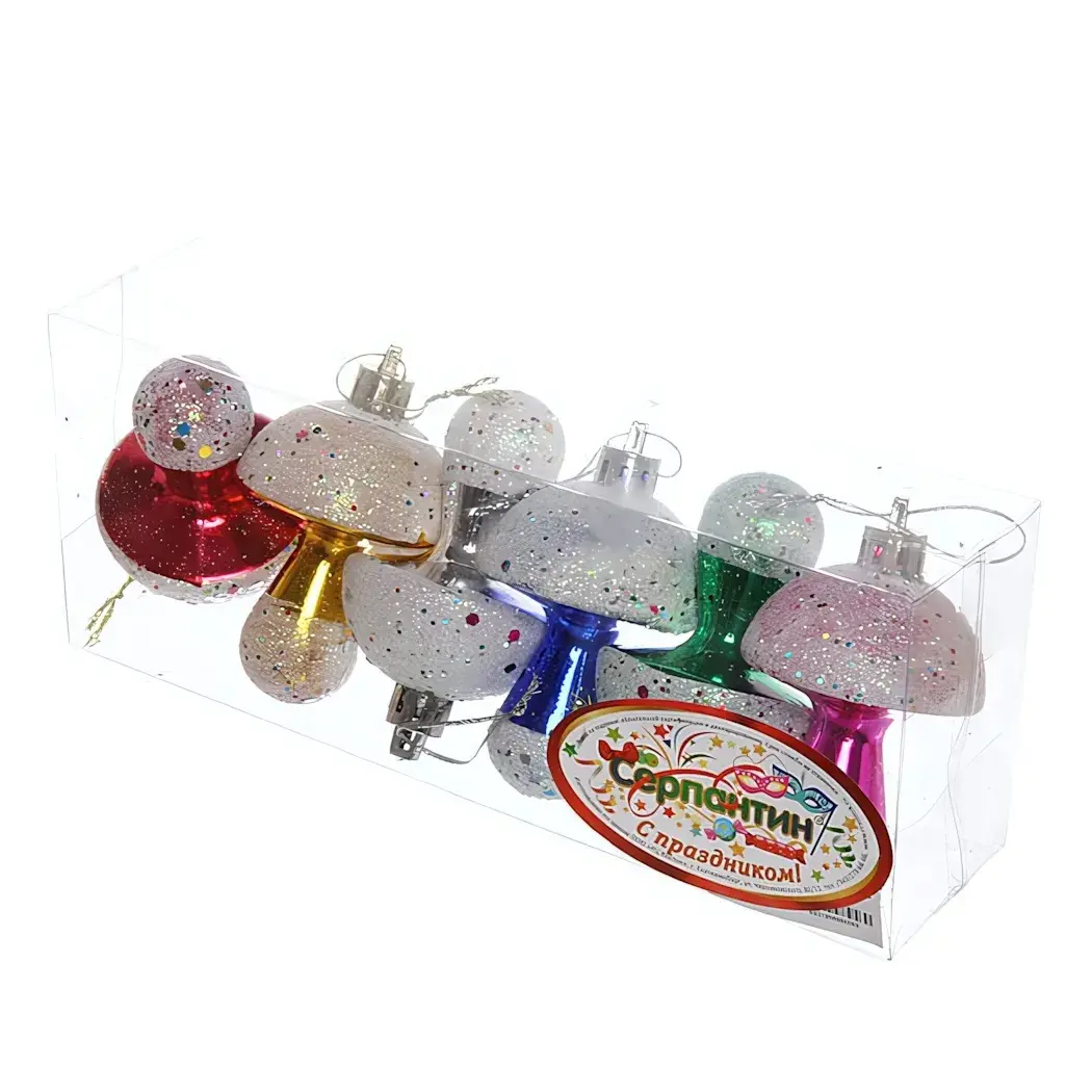Выбирая ёлочные игрушки «Грибочки», вы получаете не только красивый декор, но и практичность. Их блестящая поверхность с мелкими конфетти создает эффект мерцания, что привлекает внимание и радует глаз. Кроме того, они легкие и компактные, что облегчает их хранение после праздников.