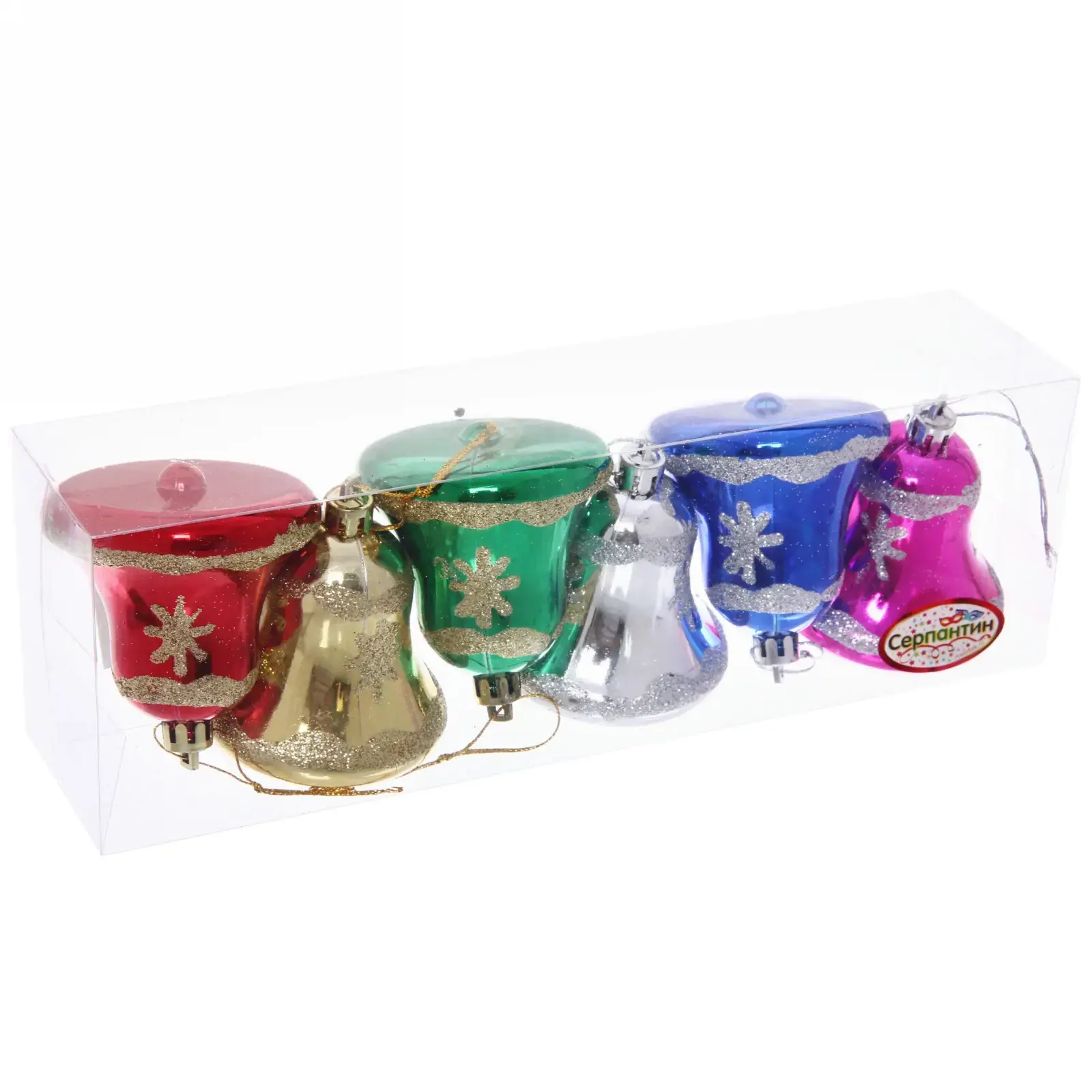 Ёлочные игрушки «Колокольчик новогодний» 5,5см микс цветов (набор 6 шт), пластик, для елки и декорирования